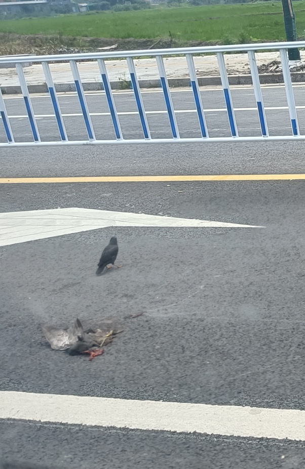 落单的鸟儿,坚强!不过只能怪它自己降错地方了,毕竟马路不是你们的地盘。