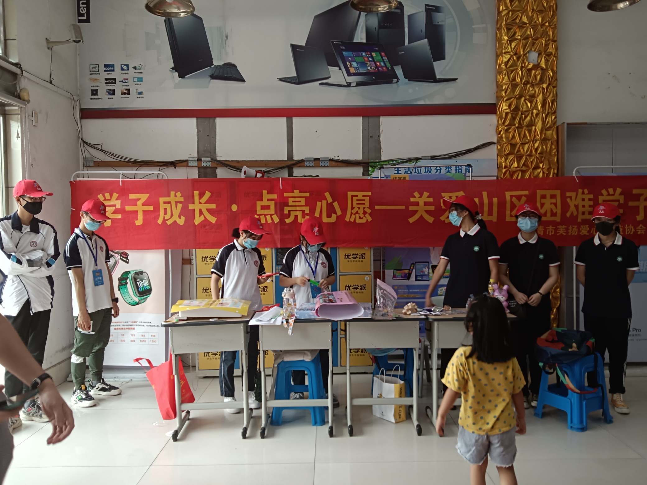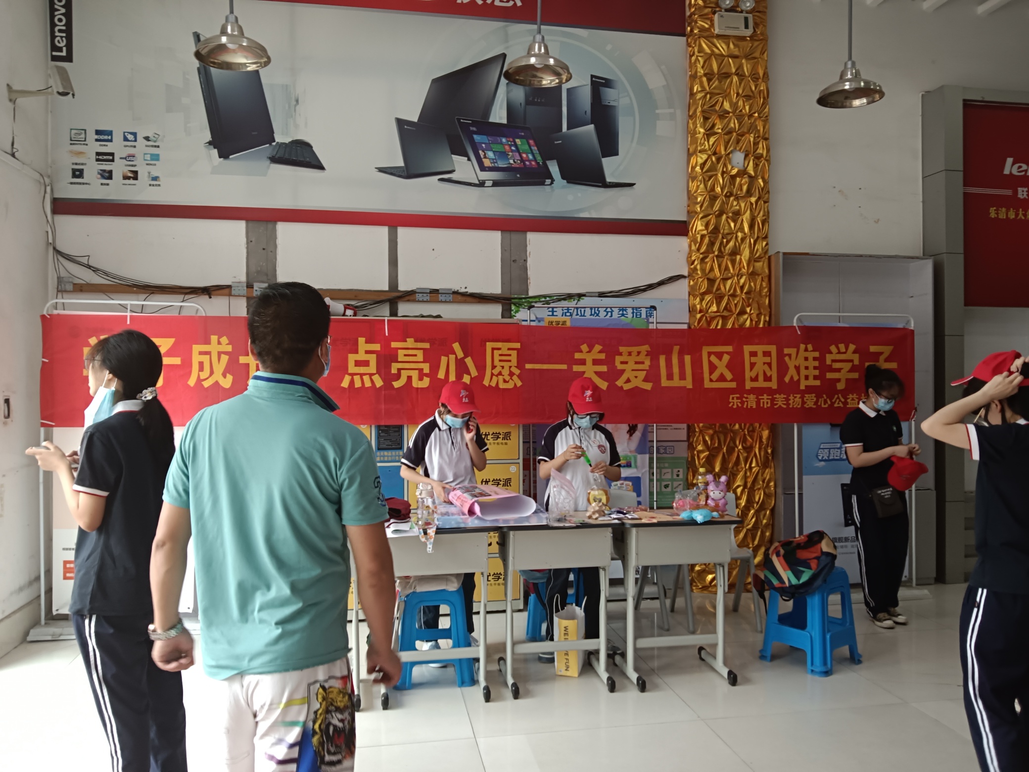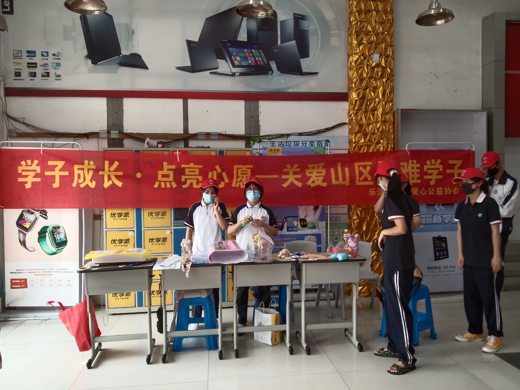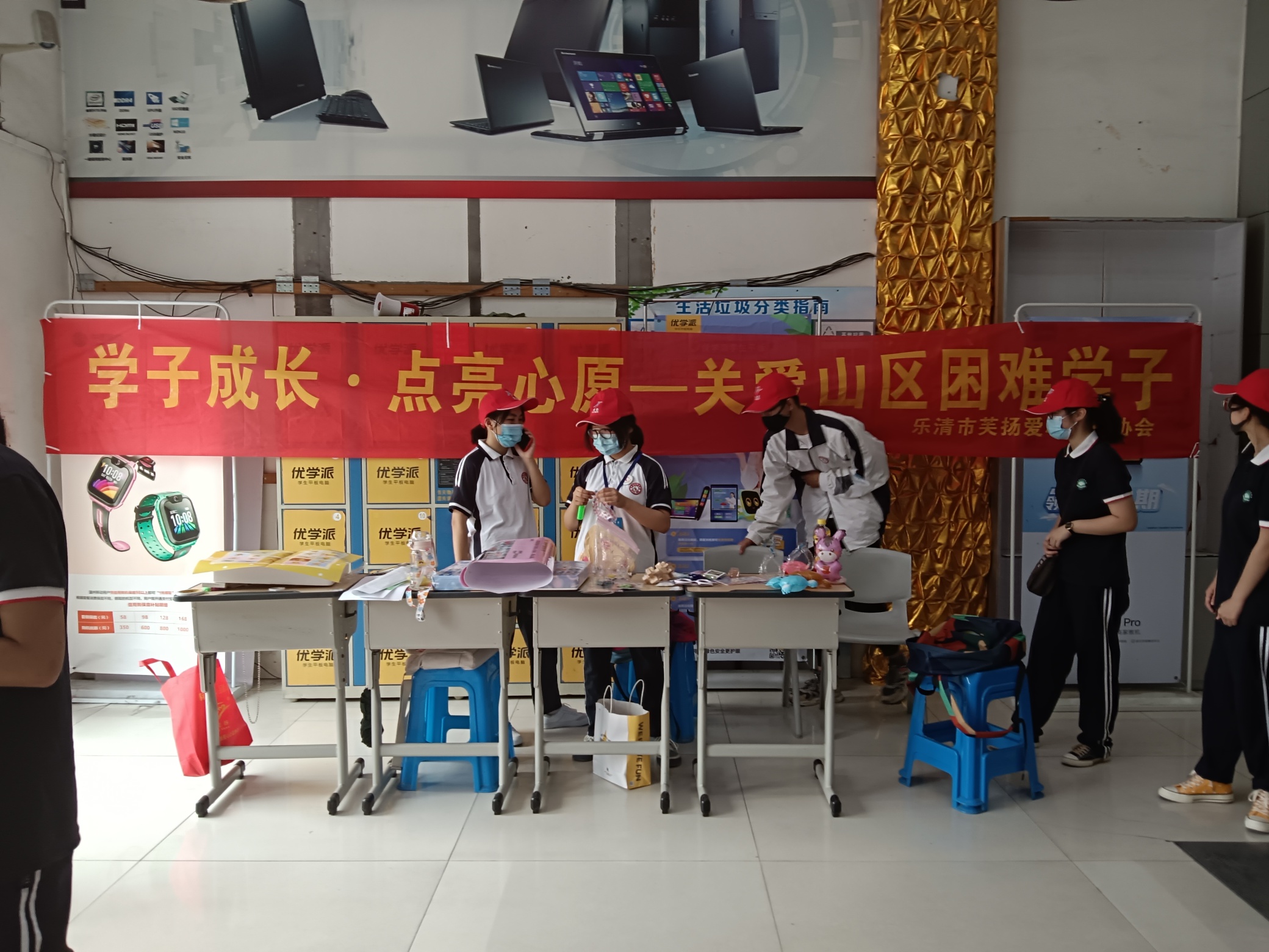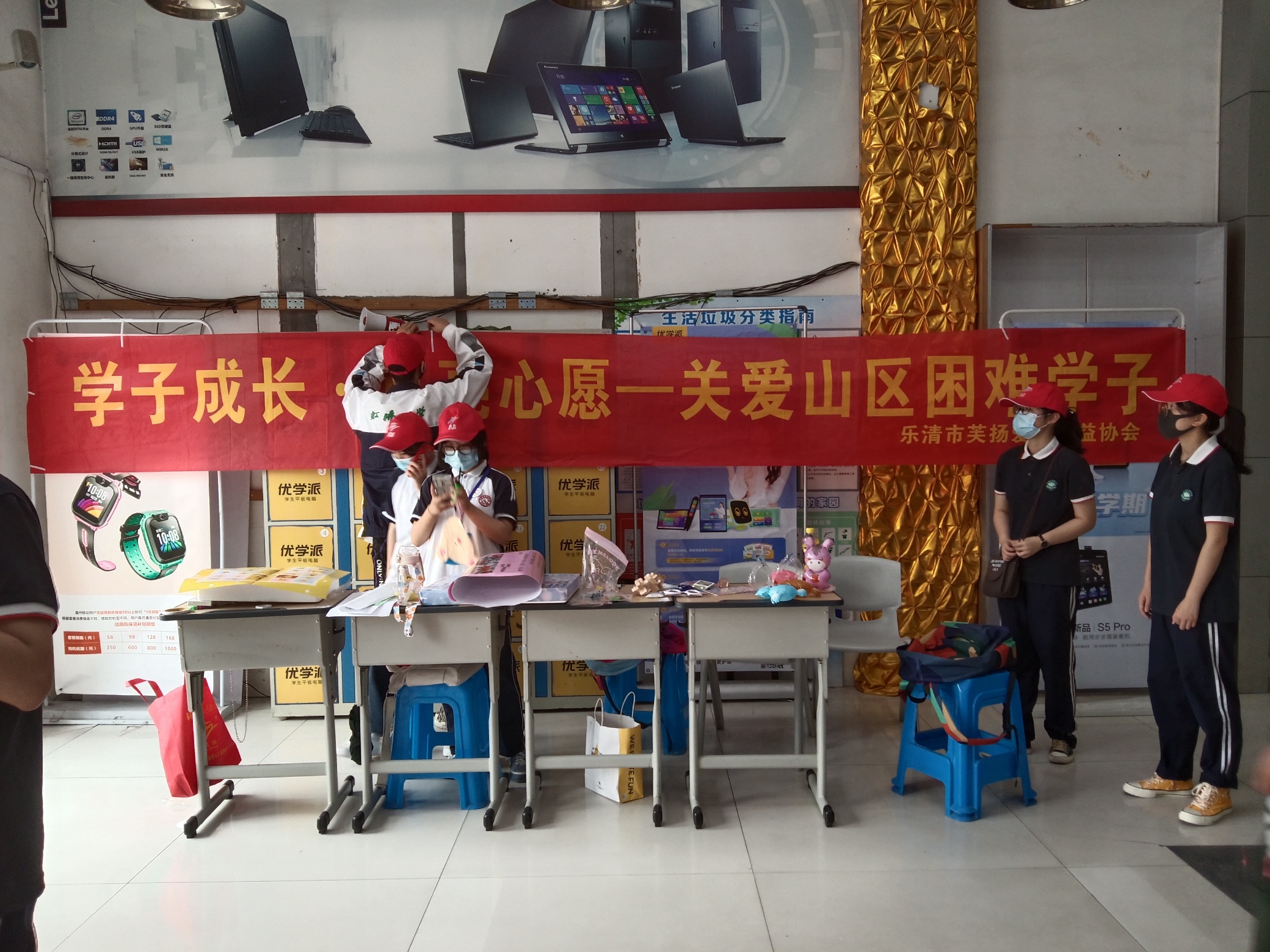 #助学##大救助##乐清平安##为乡村孩子捐赠助学包# 关爱山区学子,乐清市仁乐社会服务中心和芙扬爱心公益协会链接虹桥中学和芙蓉中学青联志愿者,在虹桥时代广场开展义卖,所得作为山区学童微心愿经费。
