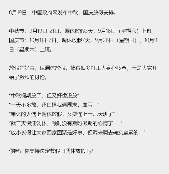 我们乐清私企打工人放假没有这么多,根本没有这么苦恼,也就你们这些吃着铁饭碗的人才会苦恼放假调休。