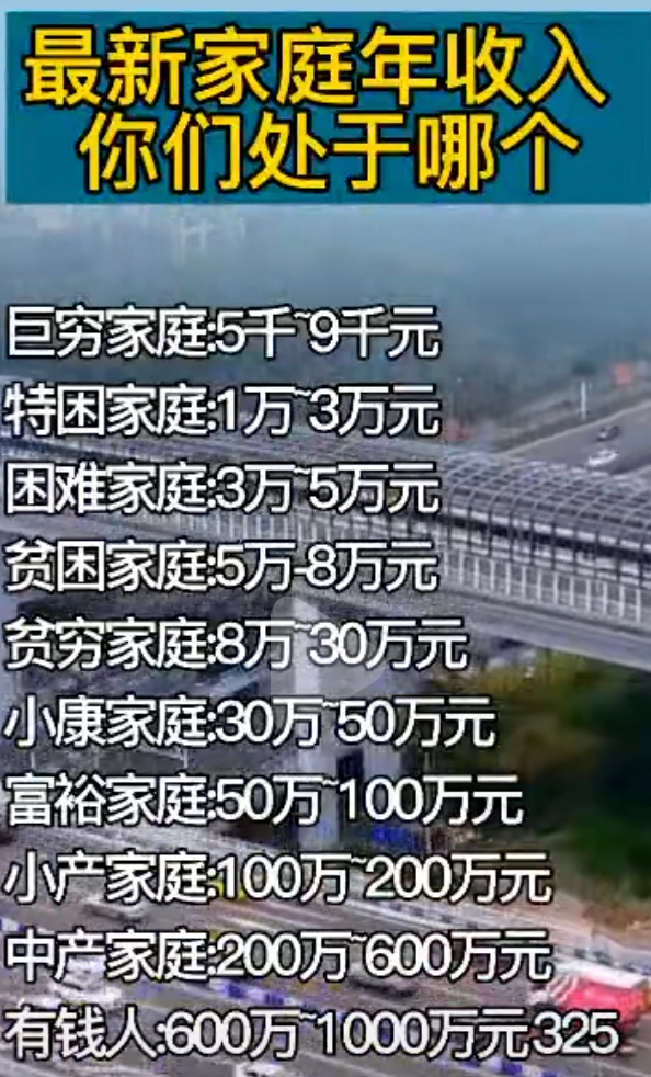 最新家庭年收入,你们处在哪个等级?