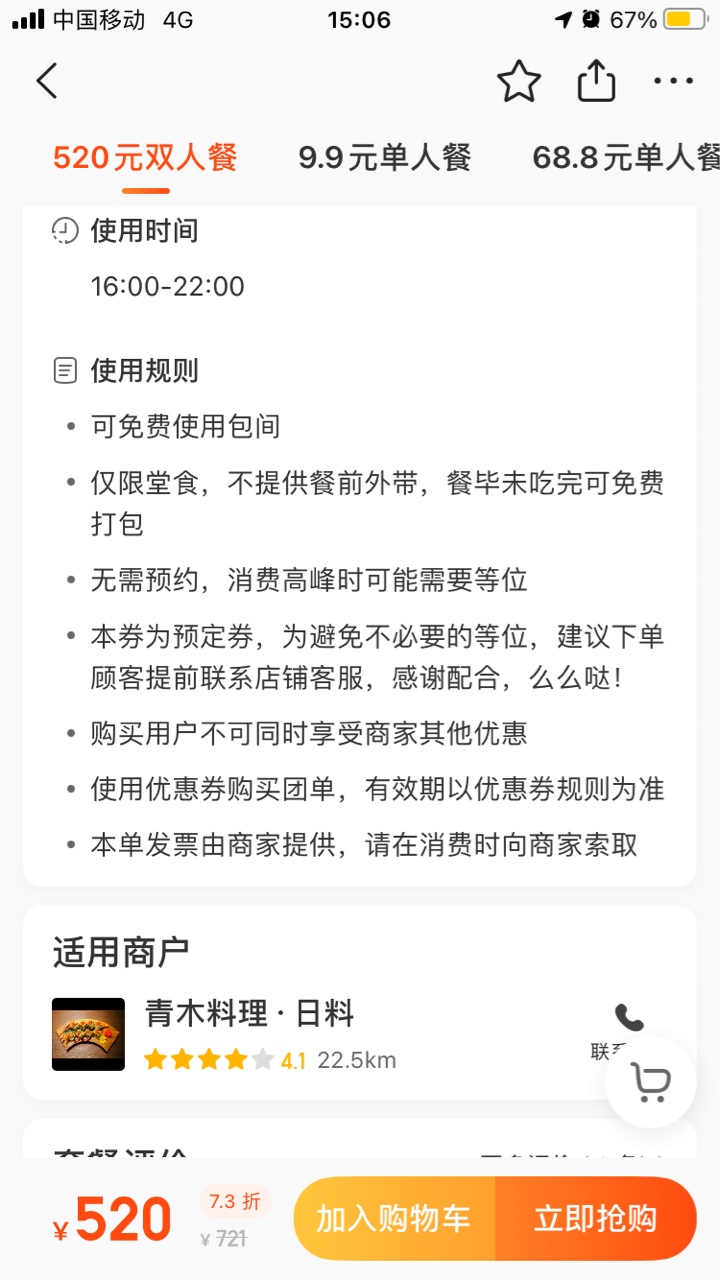 团购好的商家很多,基本也会格外点半,青木也是我遇到的唯一后悔团购了的商家