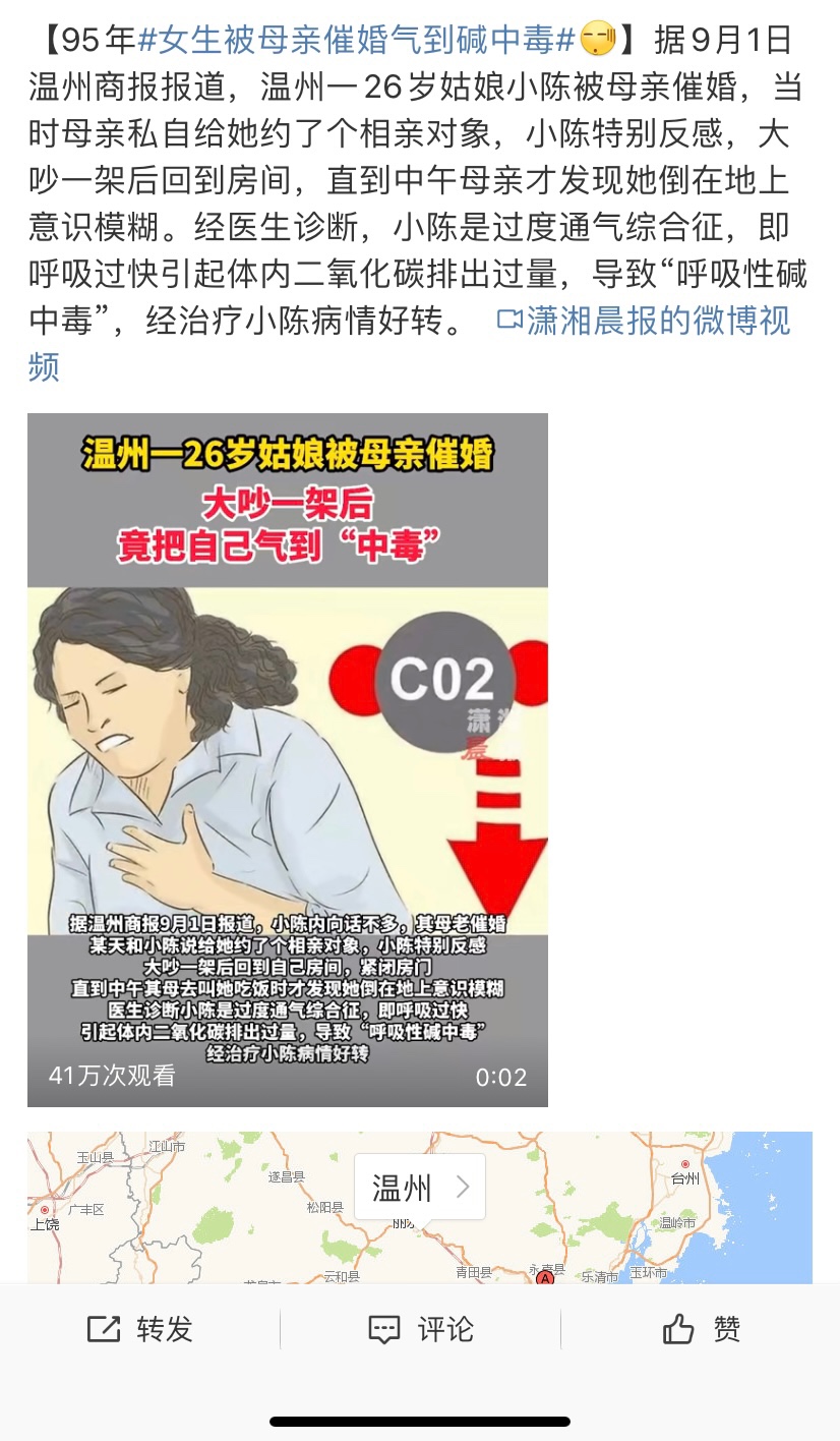 就不知道为什么,父母老一辈们在婚恋方面真过时!我们乐清催婚也是蛮厉害的,温州这姑娘中毒,想起我有一亲戚他家小孩直接不回来,除了过年待几天,爹妈还来不及张开就说要上班跑得老远了。你看,好好的亲子关系就被催婚这事搞得这么紧张,何苦呢,唉!不结婚就不结婚呗,又不是什么伤天害理的事了