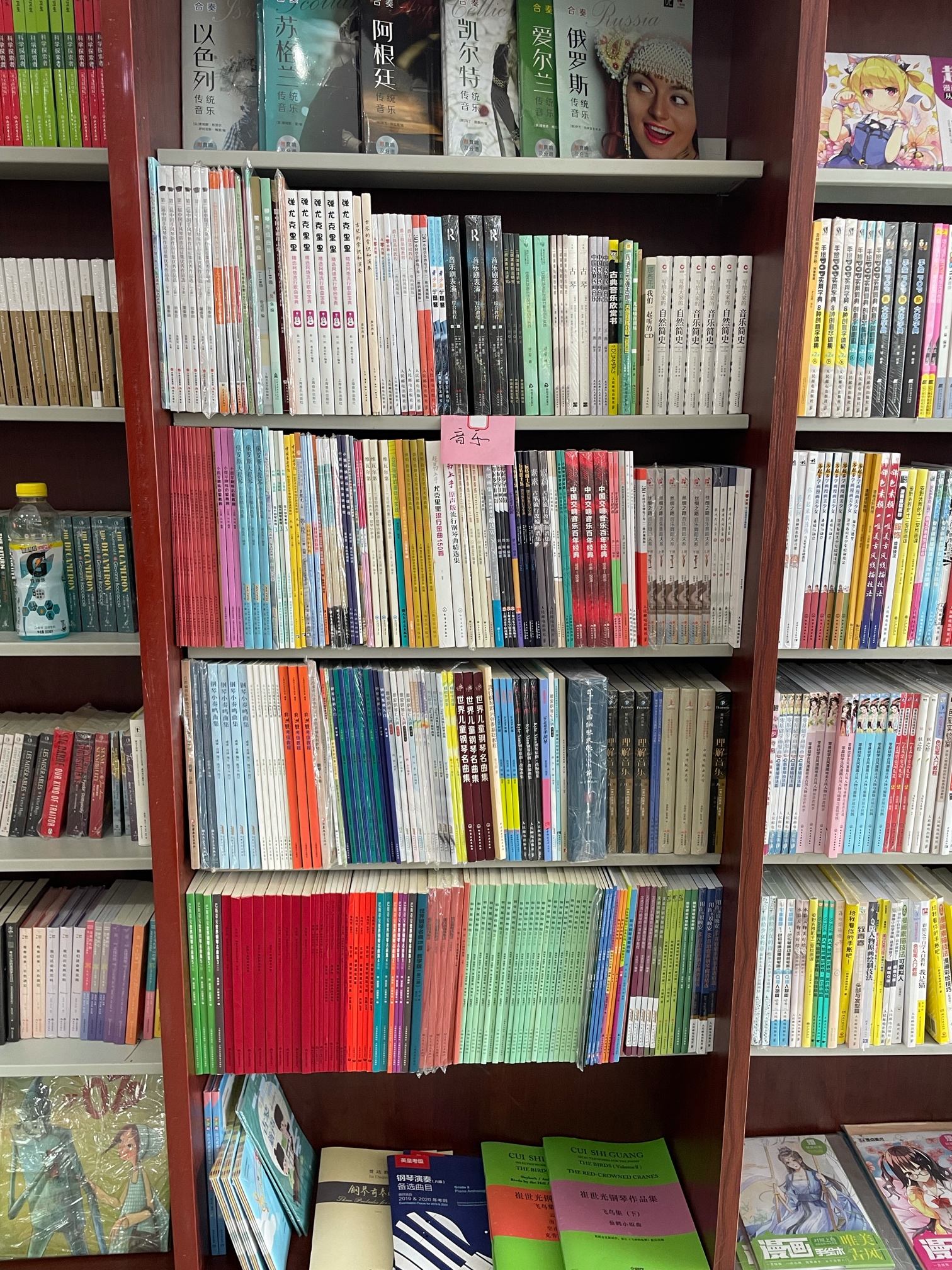 在乐清最大的新华书店3楼,我只找到了一个书架有乐音书籍,想找吉他考级的教材,整个书架上就只有一本吉他书(整个书城唯一一本)而且是塑封着的。整个3楼90%是语数外的教材,辅导书。没灵魂的人类,你们玩,我断后。