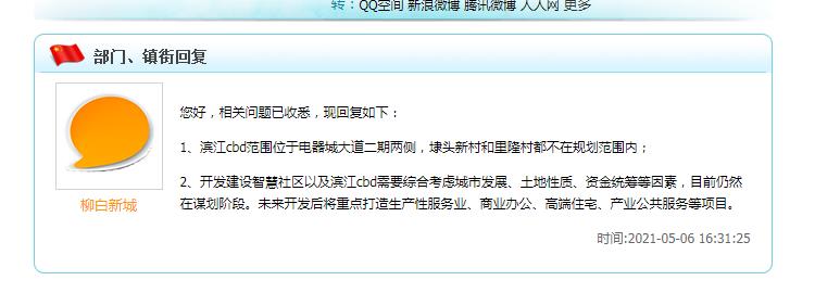 滨江CBD问政的时候说了就是电气大道二期两侧