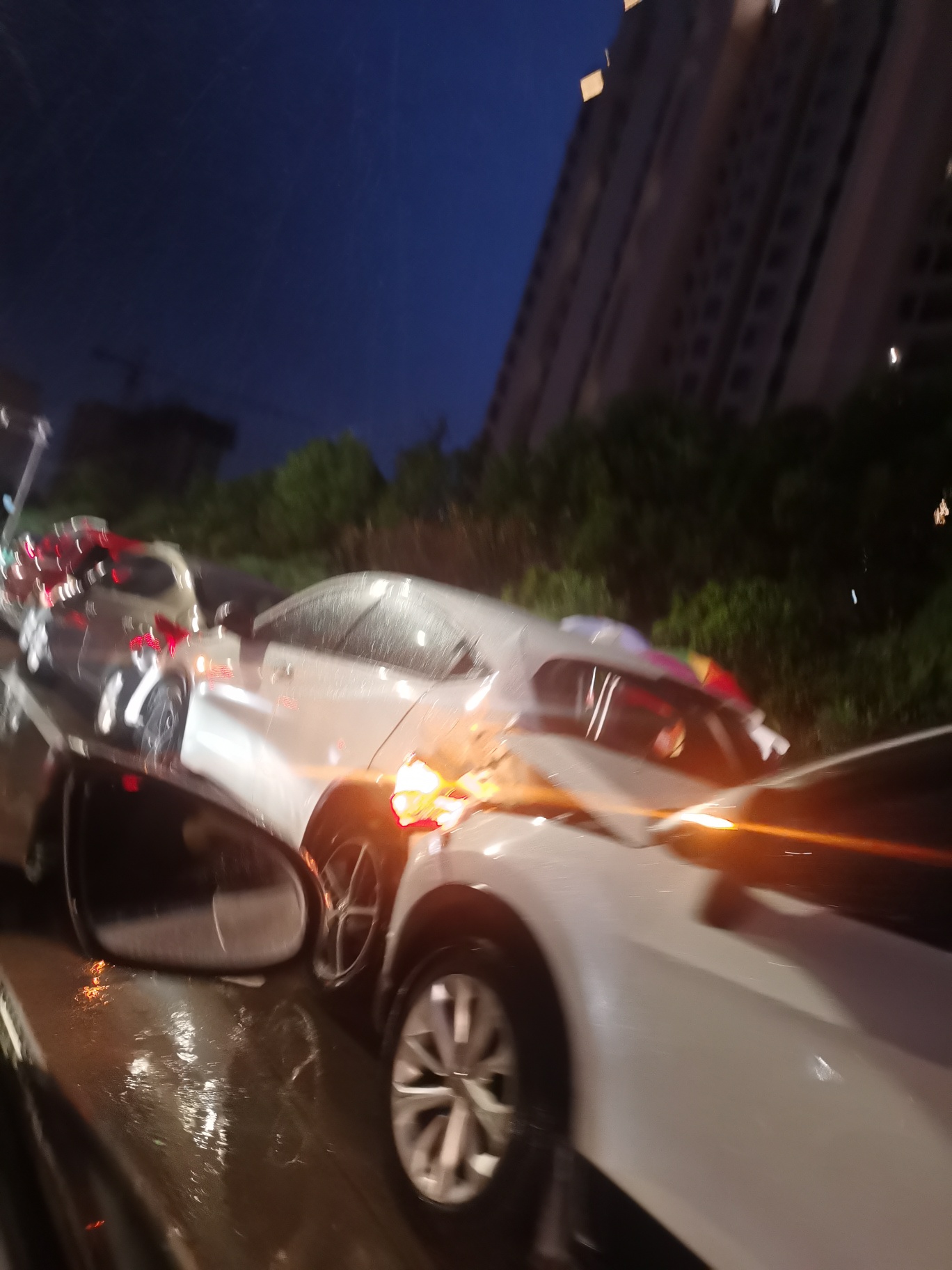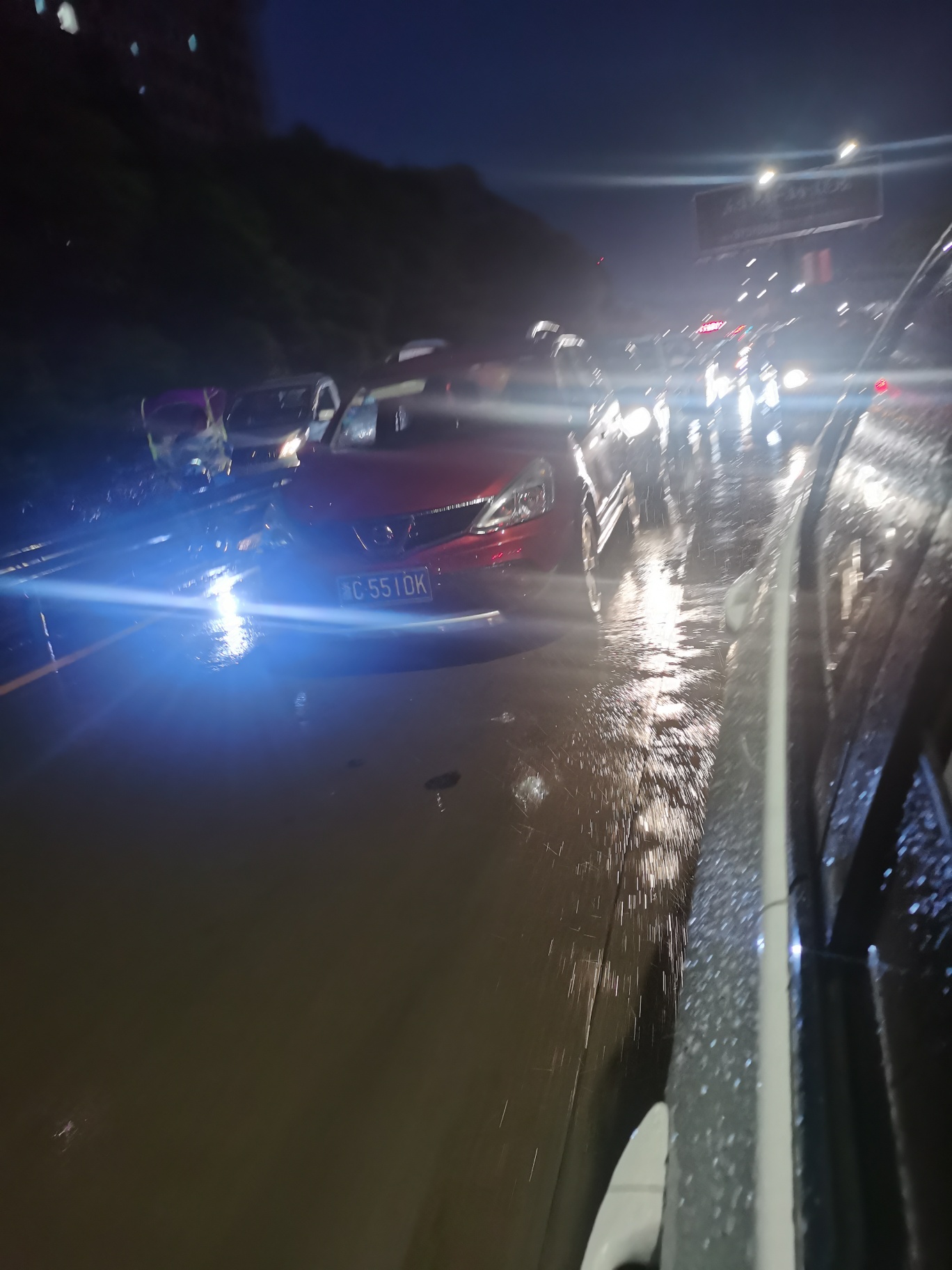 乐中对向车道四车连撞,车友们注意安全!!注意避让!