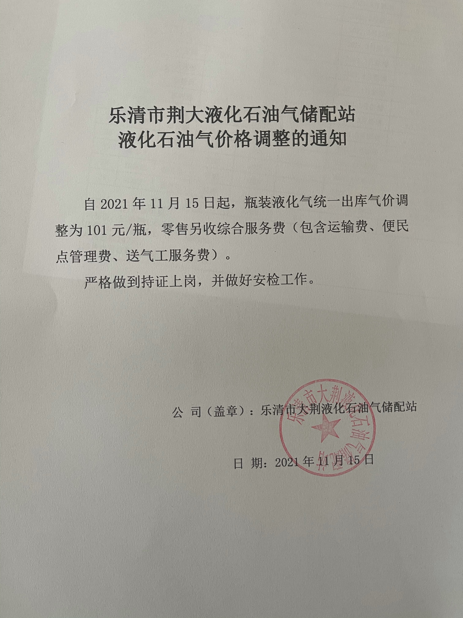 乐清瓶装液化石油气价格更新!