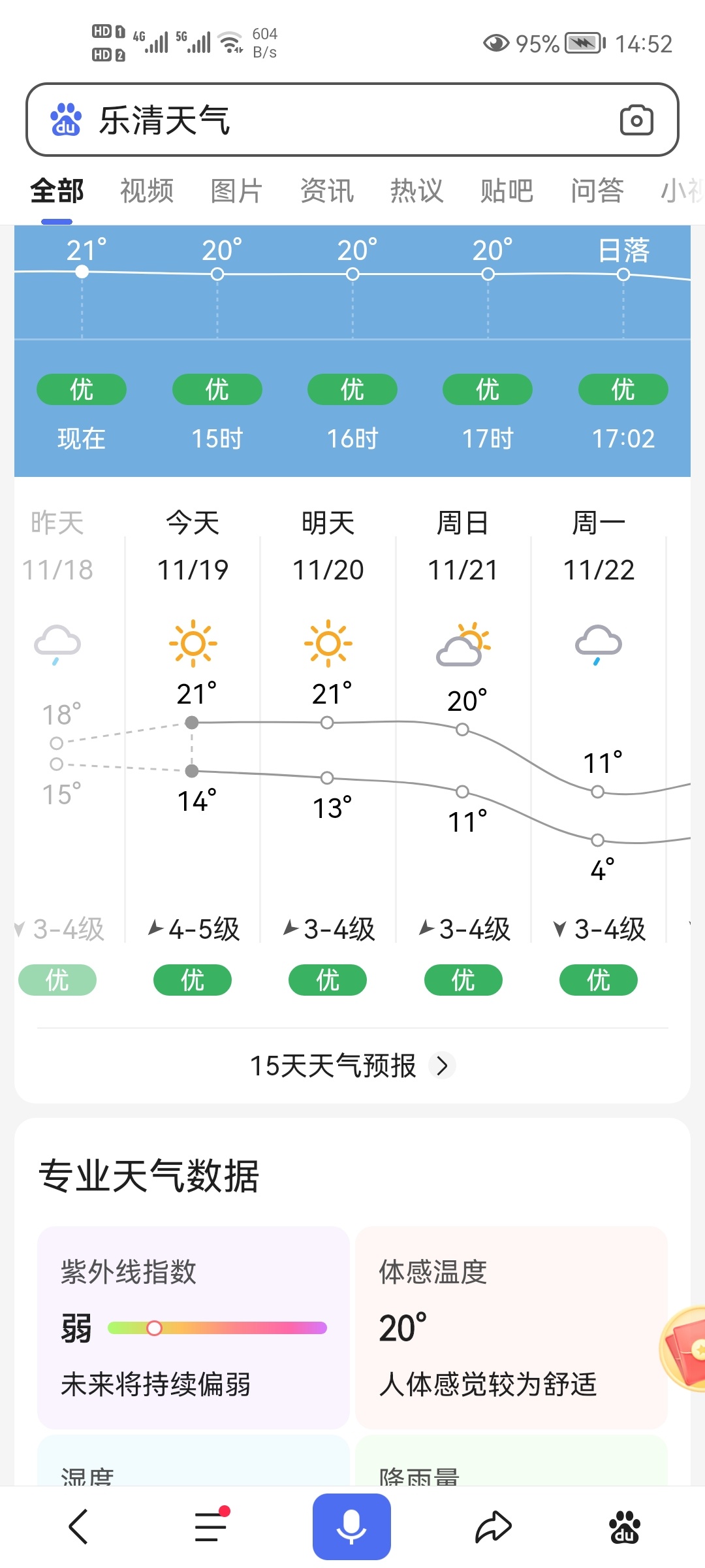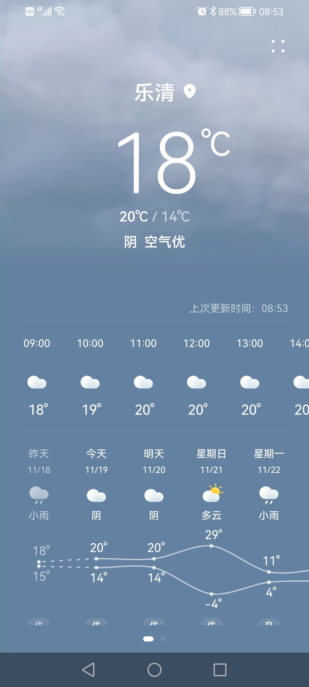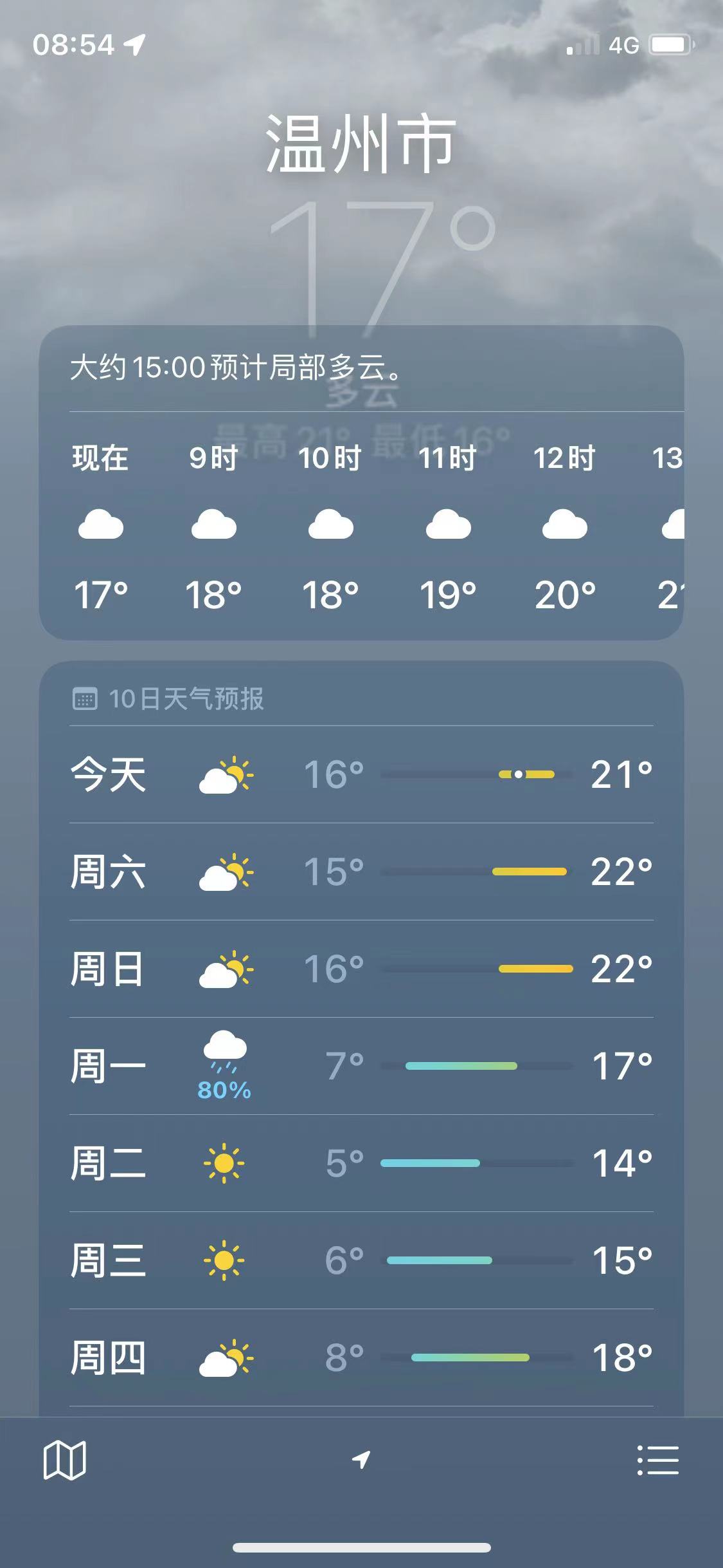 显示周日29度-零下4度,另一个显示22度,难道是版本问题?看看你们的天气预报