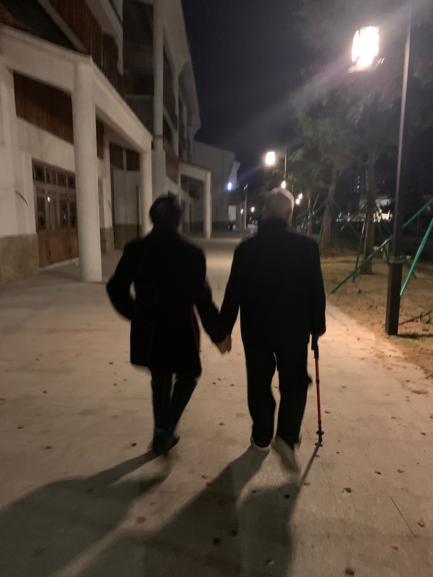 逛街看到这两个老人家,老头子头发都白了,走在小门里先过去拉老婆子的手,然后两个人手拉手一直走