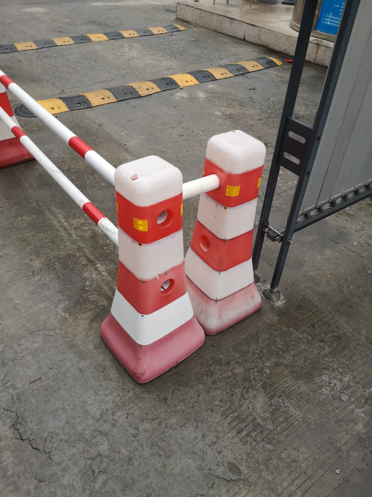 乐清体育馆塑料隔离墩碰坏了