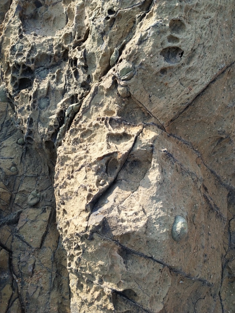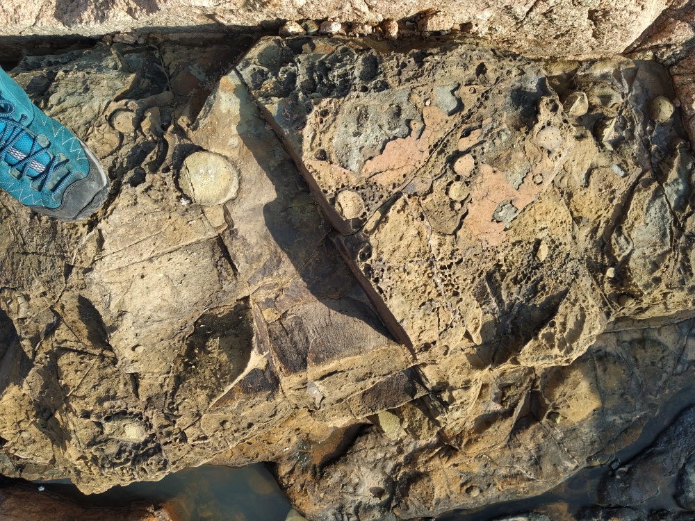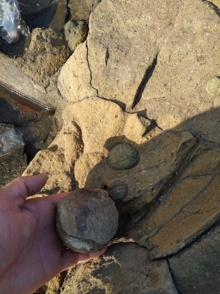 今天去大门岛玩,发现不一样的岩石,蛋一样,有一片岩石跟周边的不一样,应该是古时候火山爆发期形成的。
