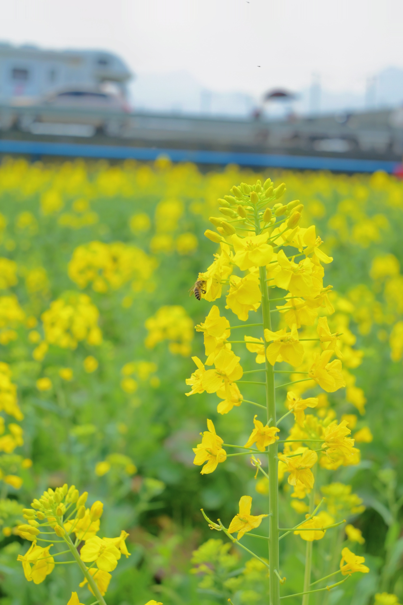乐白路旁的油菜花,还有呼啸而过的动车组哦
