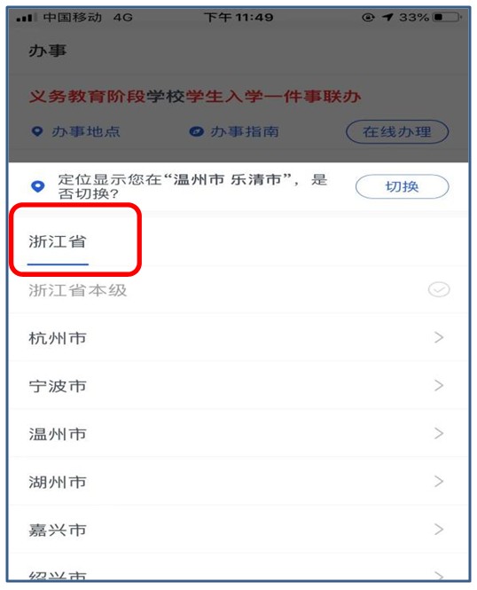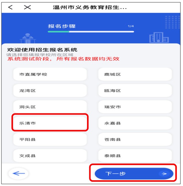 在“定位(区域)”中依次选择“浙江省→温州市→乐清市”后,进入“温州市义务教育招生管理系统”的报名界面(图3)。