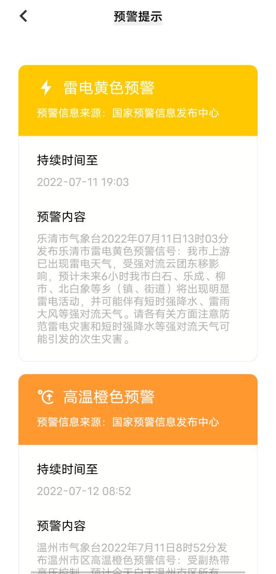 连续几天的高温橙色预警终于让我看到个不一样的预警!雷电黄色预警!要打雷了,是不是要下雨了?是不是要凉快点了?