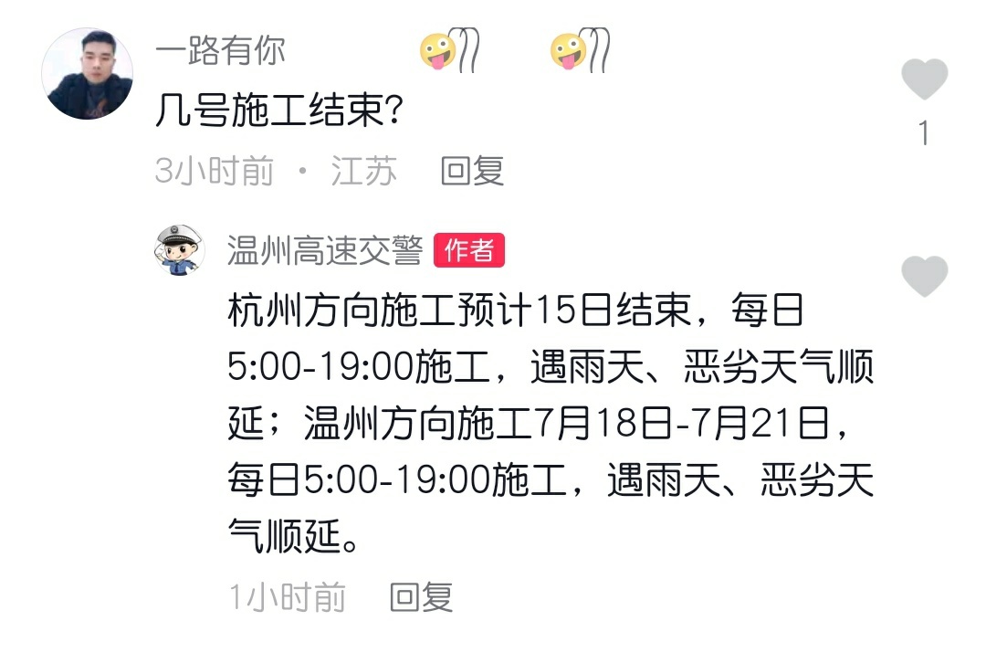 那还有人会问什么时候能完工,恢复通车。