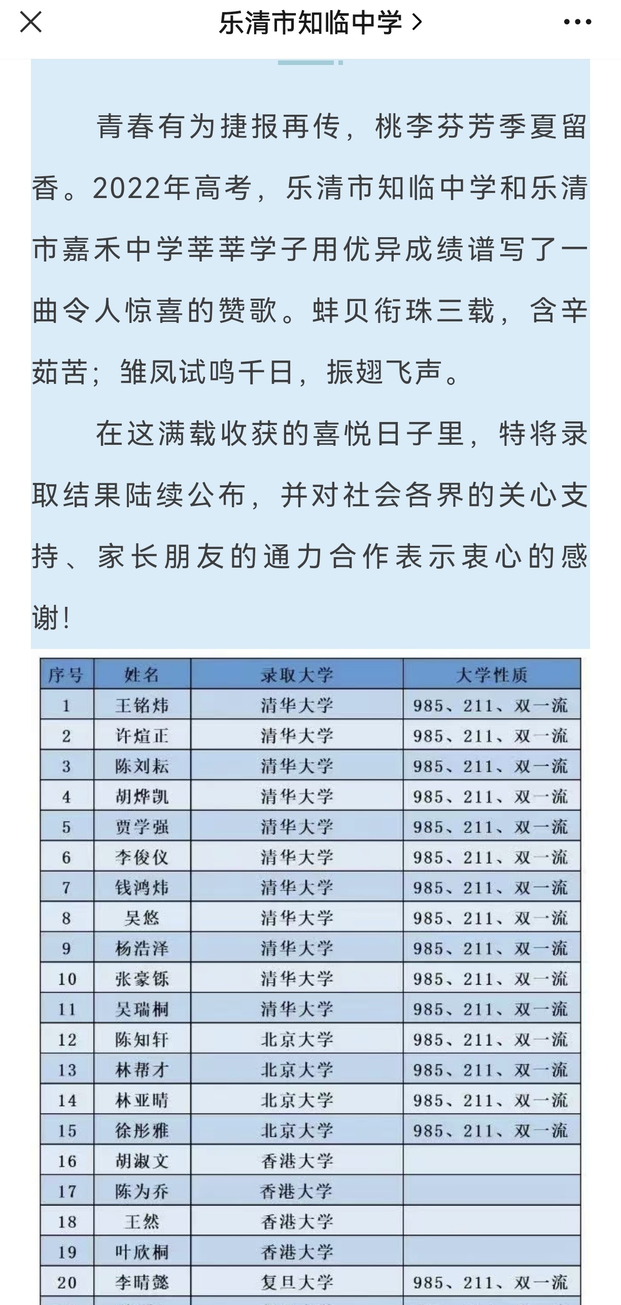 乐清最高分693分,裸考被复旦大学录取。
