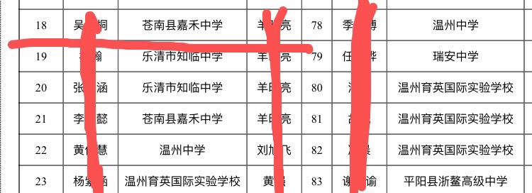不是故意找茬,其实大家关心的就是关心整个知临的成绩,800个人出这样的成绩与1500个人多个地区出这样的成绩是完全两个概念,这就相当于一个村今年出了5个清北与一个地级市出了5个清北是完全两种不同的心情。其实大家最关心的还有一点是这么多成绩中有多少是属于乐清孩子的,假如出的成绩孩子大部分都是台州、瑞安、苍南、永嘉、丽水这些地方的顶尖孩子,那就没多大意思了。唯一知道的是那个杨某泽可能是乐清人,其他的都不清楚,那个贾某强是瑞安的