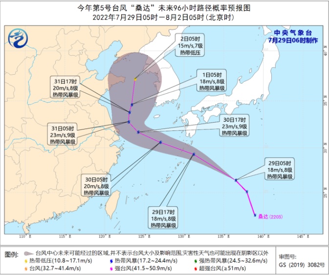 今年第5号台风“桑达”(热带风暴级,英文名称:Songda;名字来源:越南;名字意义:越南西北部一河)已于昨天晚上生成,其中心今天(29日)早晨5点钟位于日本冲绳县那霸市偏东方向约880公里的洋面上。