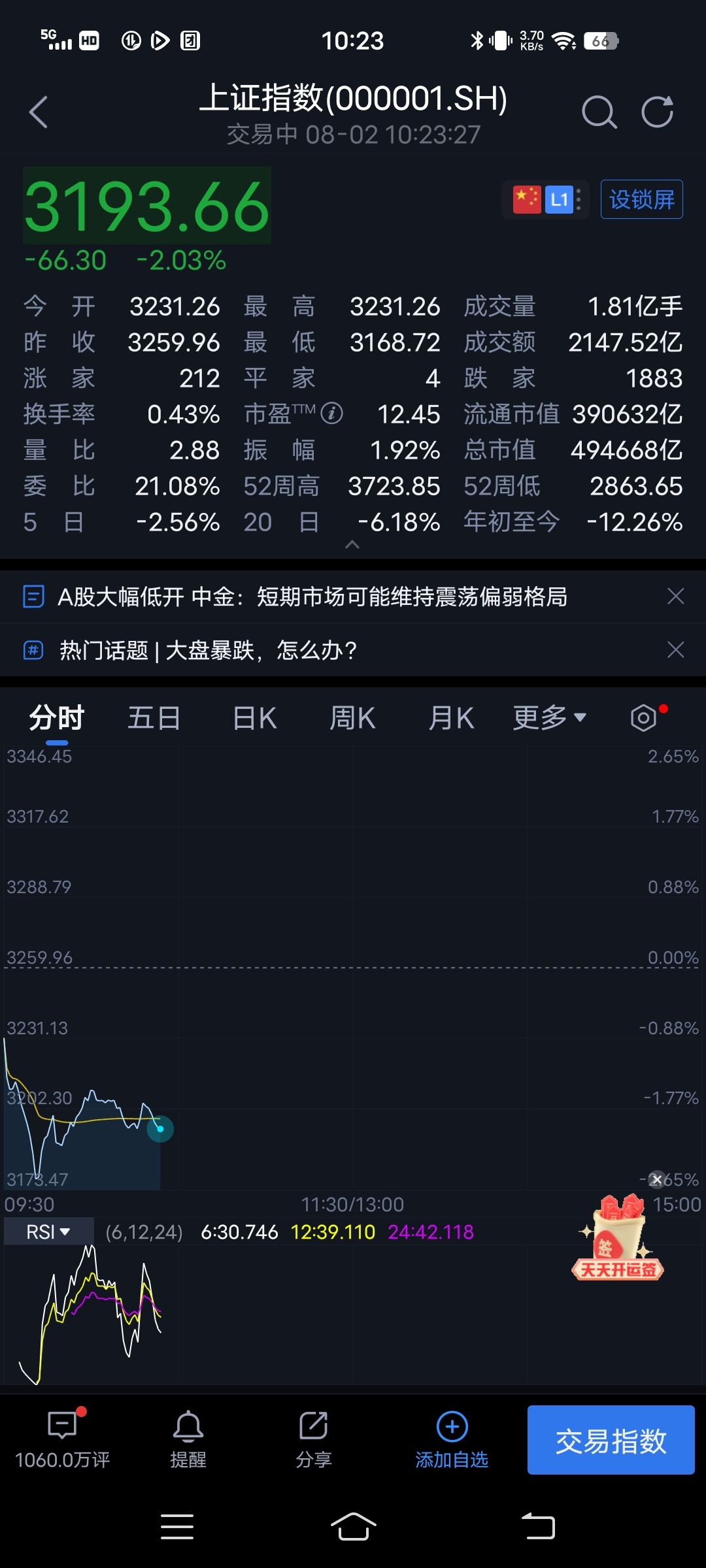 一只早上涨5点,下午跌2点,还有一只大跌。市值打95折。