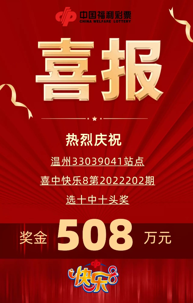 惊喜降临!7月31日,在快乐8游戏第2022202期开奖中,全国仅开出1注“选十”玩法头奖喜降我省温州。