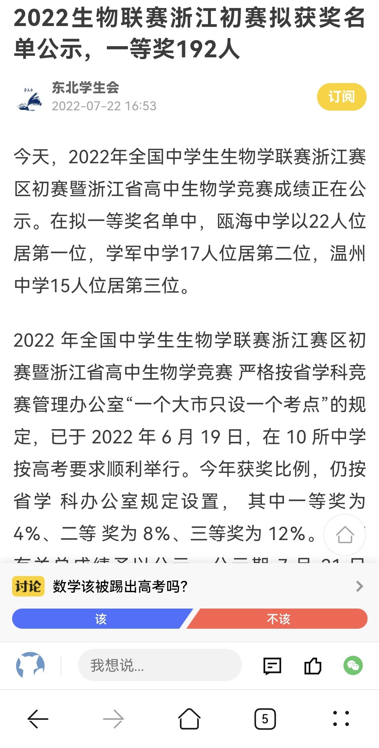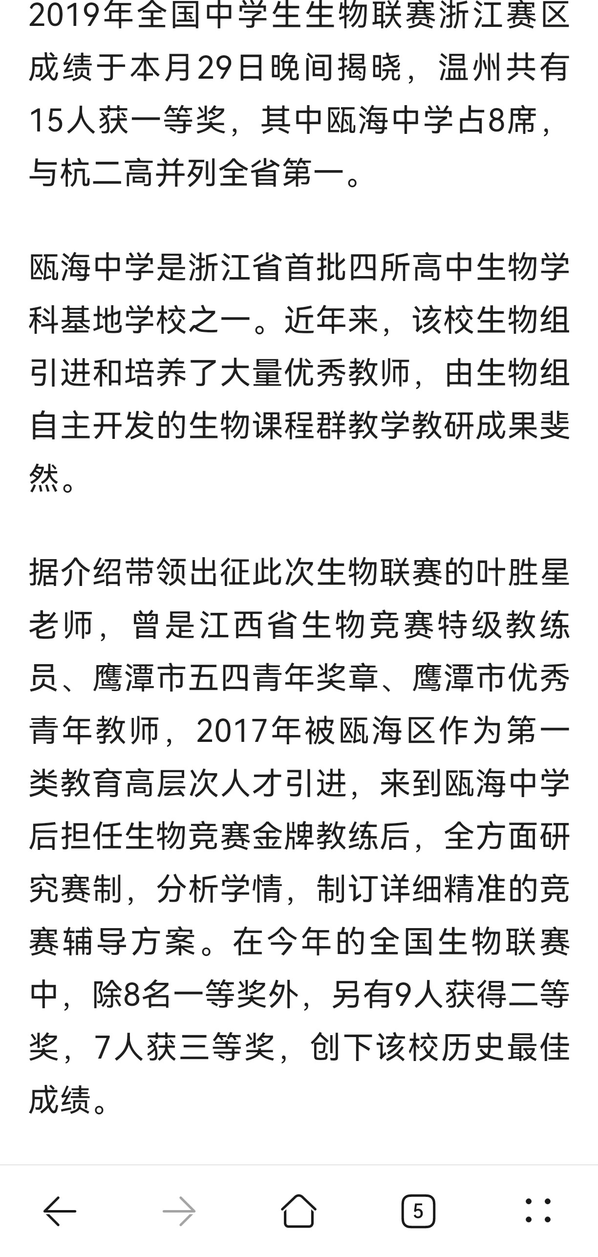 瓯海中学专业攻生物,难道他们的学生就比我们乐清的强吗?没有。就是他们专业攻生物而已。