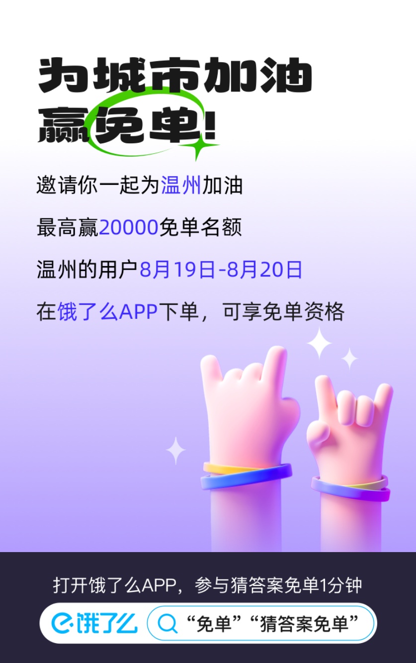 饿了么免单:温州PK长沙,乐清的外卖族们助力点起!