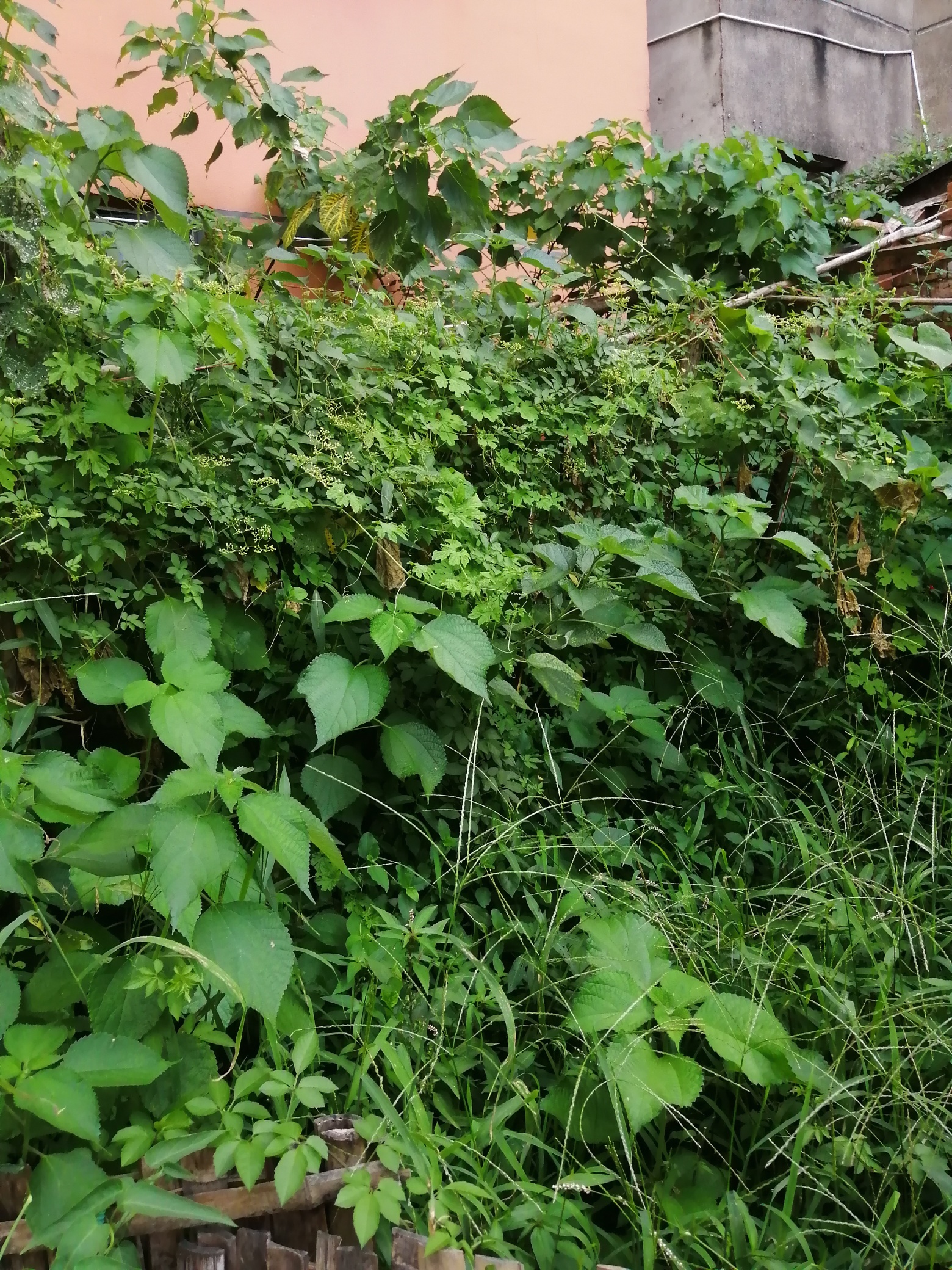 种那么多绿色植物哟!但可惜了长了好多野草,也不拔掉,成了荒草一堆