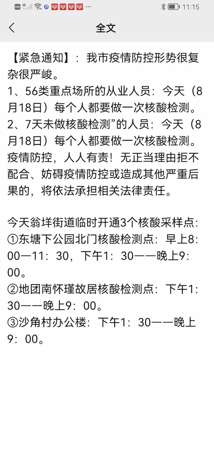 翁垟哪里有核酸呀?今天晚上?