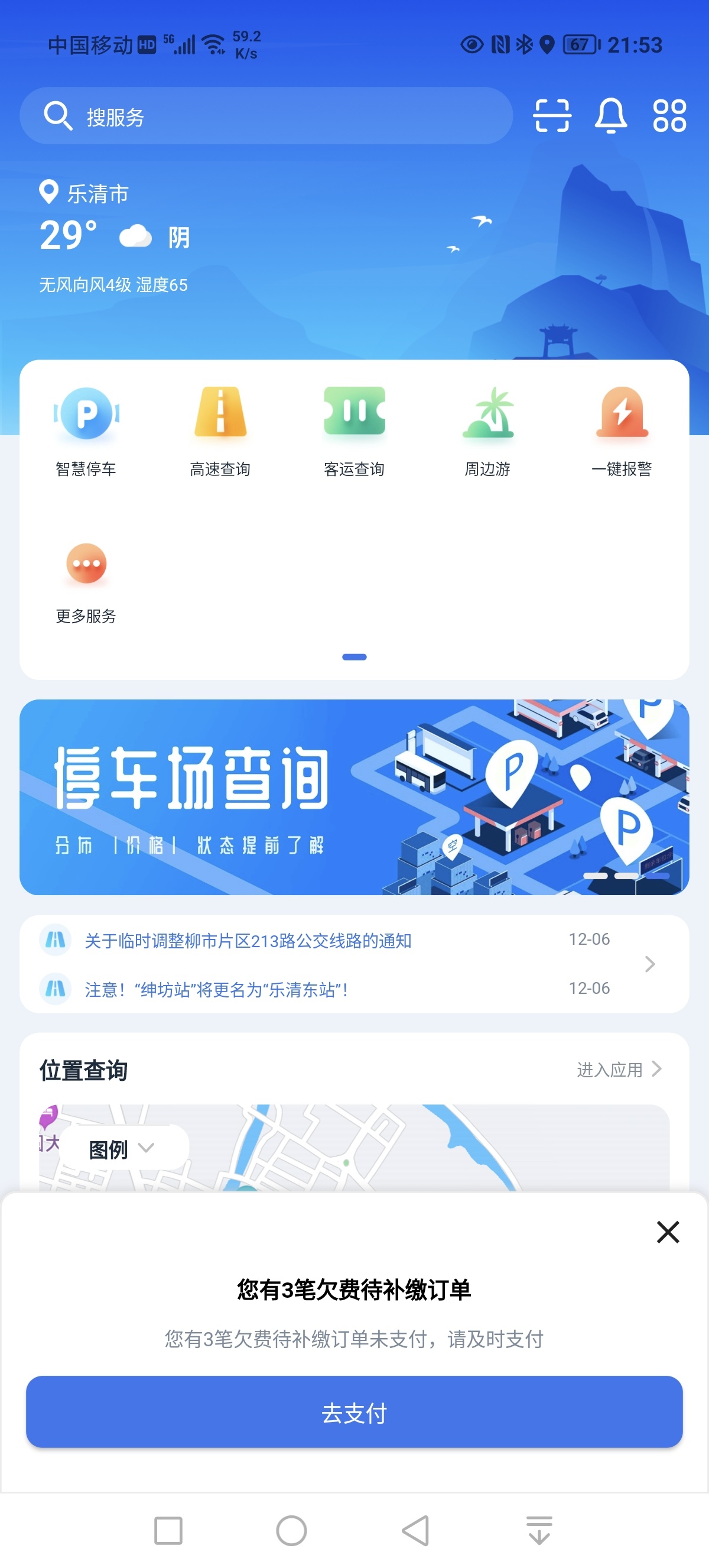 乐清道路停车位已经开始收费了吗?不久前手欠,下载了个叫“乐清行”的APP,昨晚又手欠点进去了,一进去跳出来提示我有三笔欠费待补缴订单。日期,地点非常详细,最早一笔是6月29日,最近一笔是9月1日。我看通知还没开始到收费时间,怎么就给我记上帐了?