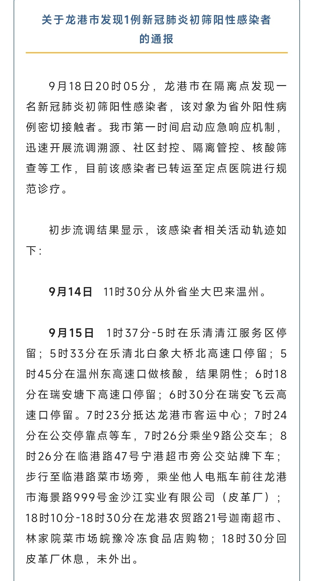 龙港发现一例初筛阳性!9月15日来过乐清……