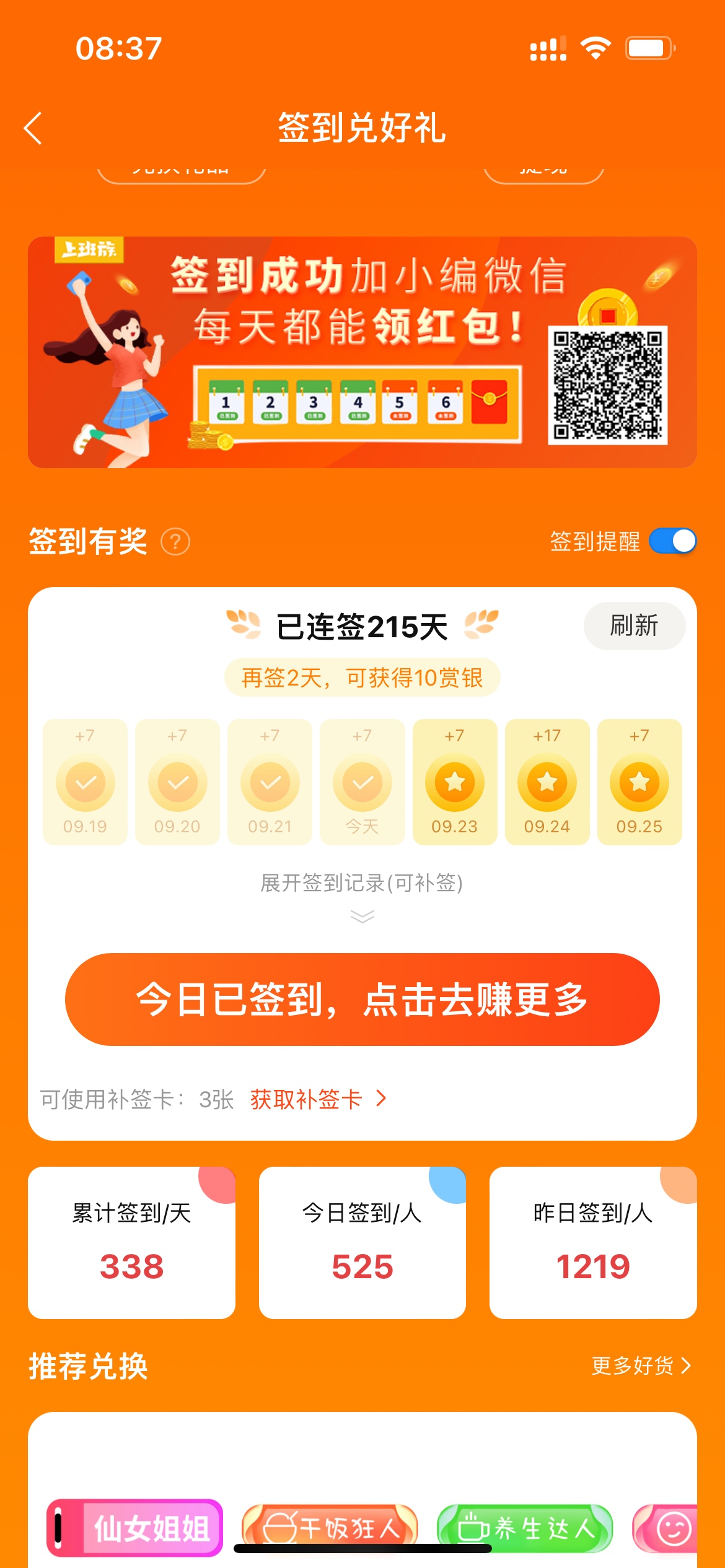 签到215天