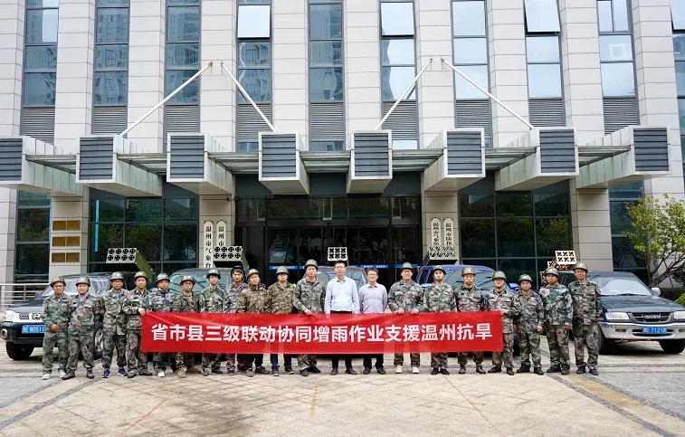 作业规模最大,全省支援温州。为支援温州抗旱,浙江省气象局党组高度重视,紧急从全省各地抽调8支人工增雨作业队伍驰援温州,开展省市县三级联动协同增雨作业。此次支援温州的人工增雨作业队伍于10月31日下午起陆续抵温。第一批4支队伍即湖州市本级及德清、绍兴上虞和嵊州队伍在温州完成集结后,立即奔赴乐清、平阳、泰顺和苍南4县支援。第二批4支队伍即金华市本级及义乌、台州市本级和丽水青田的作业队伍,于11月1日分别赶赴瑞安、永嘉、温州市本级、文成增援。