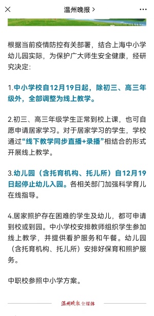 2.初中、中职学生原则上于12月30日离校,其中初中九年级、中职高三在元旦假期后可根据实际情况开展线上教学。