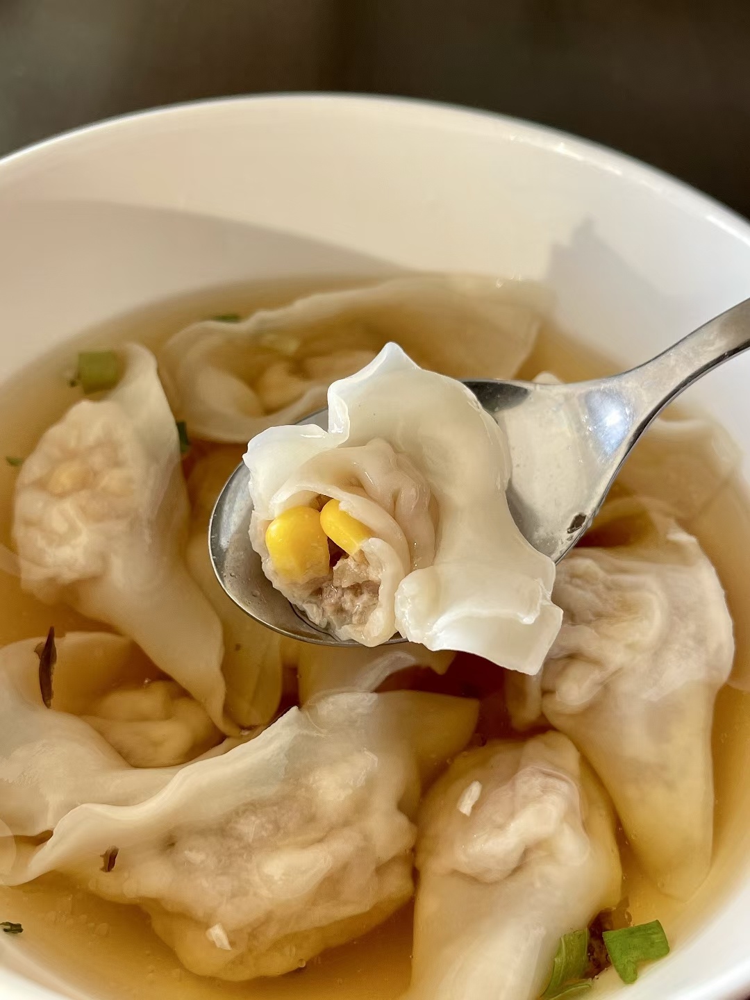早餐吃纯精肉饺子配上玉米粒真的很棒呐
