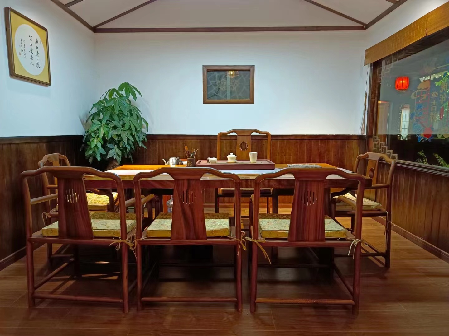 茶会里喝茶挺舒服的。