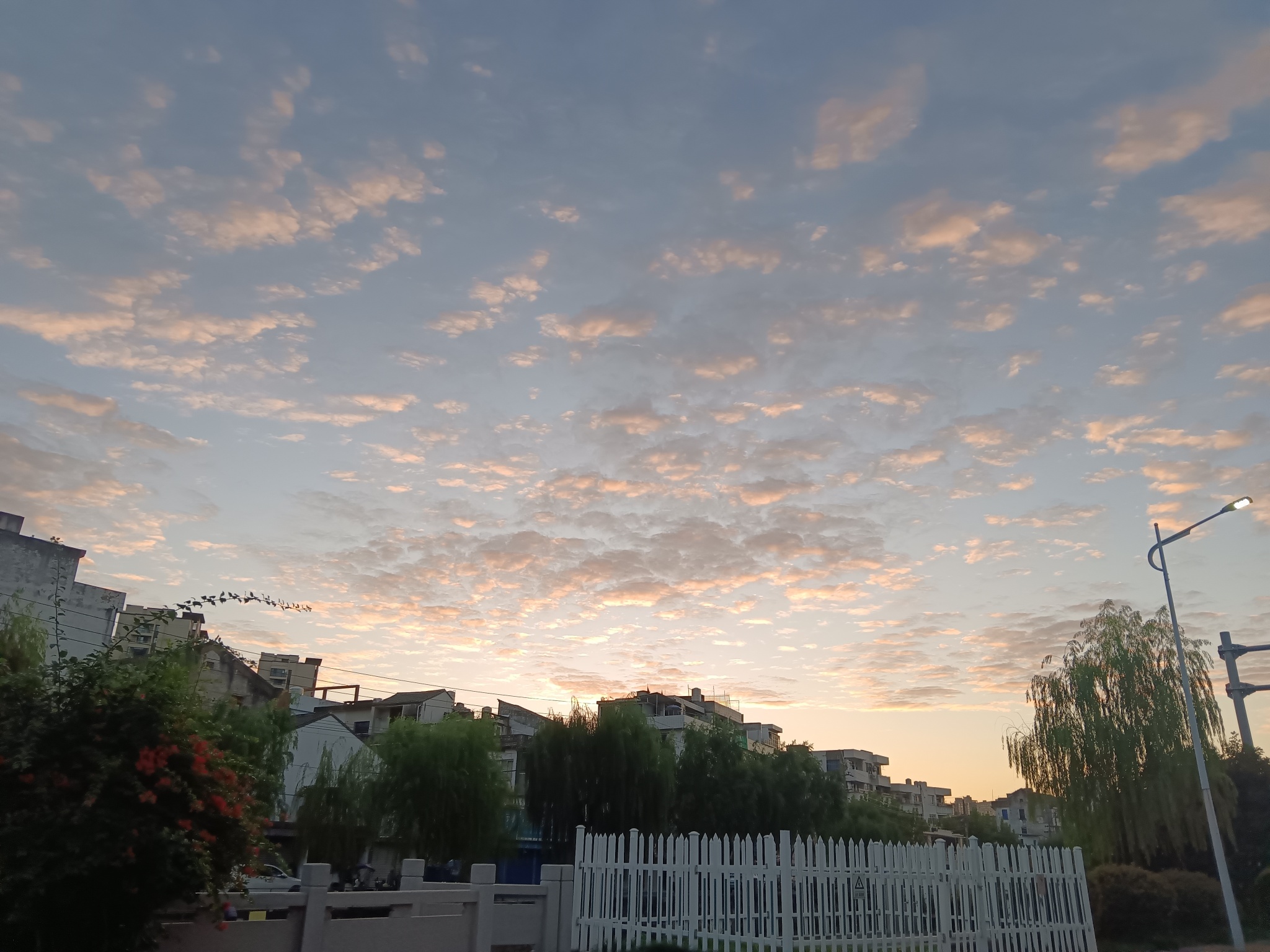 朵朵云儿,印在苍穹之间!太阳一出来,每朵云儿,都披上了金灿灿的衣裳!此情此景,我想吟诗一首?云想衣裳花想容,秋风拂槛露华浓