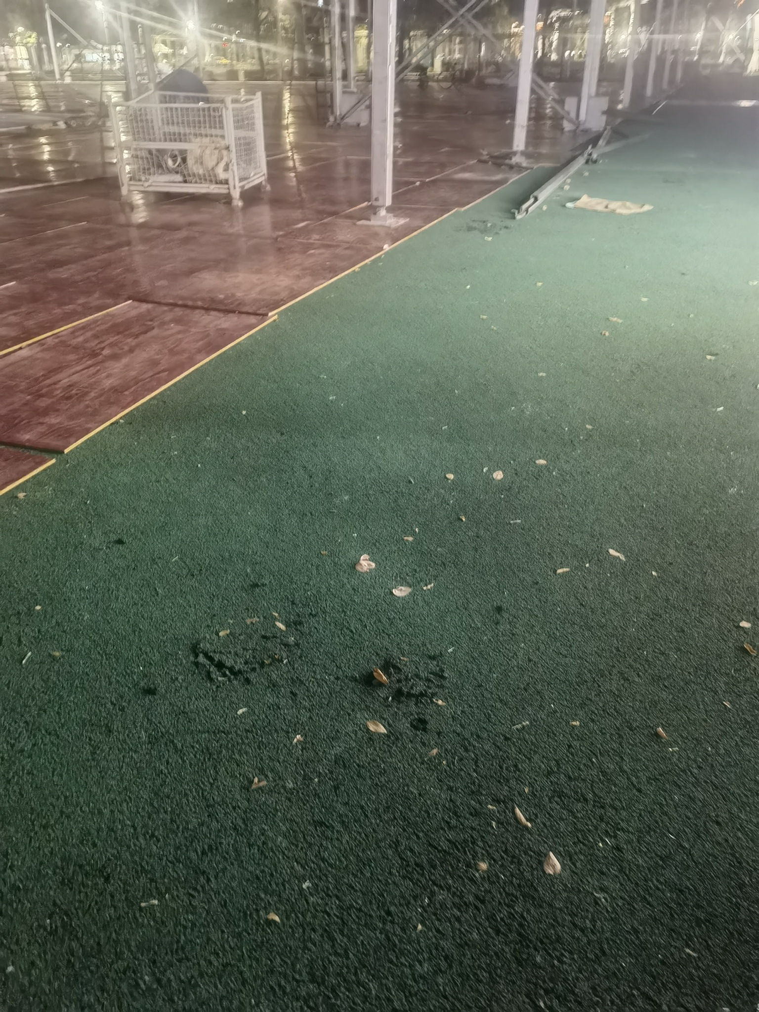 体育馆室外场地为何搭了很多大棚?塑胶场地被戳破了好多个洞。
