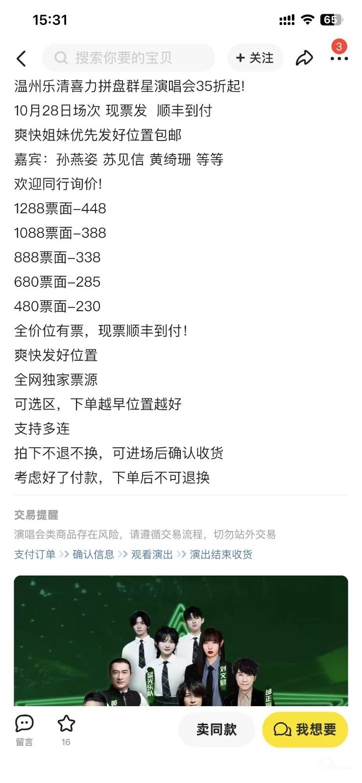 不要偷换概念,衣服换季了打折和这个两个概念。这场演出还没开始就开始打折大甩卖了。就像两个人一起进面店吃面,同样的面不同的价格。