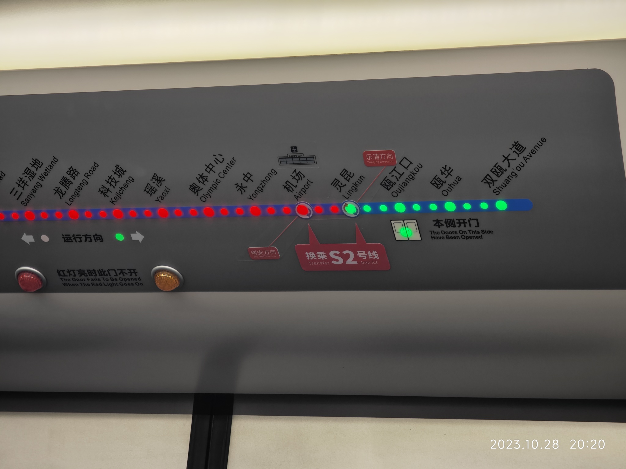 哦,车厢里播放的语音说:去瑞安的去机场转乘,去乐清的去灵昆转乘!
