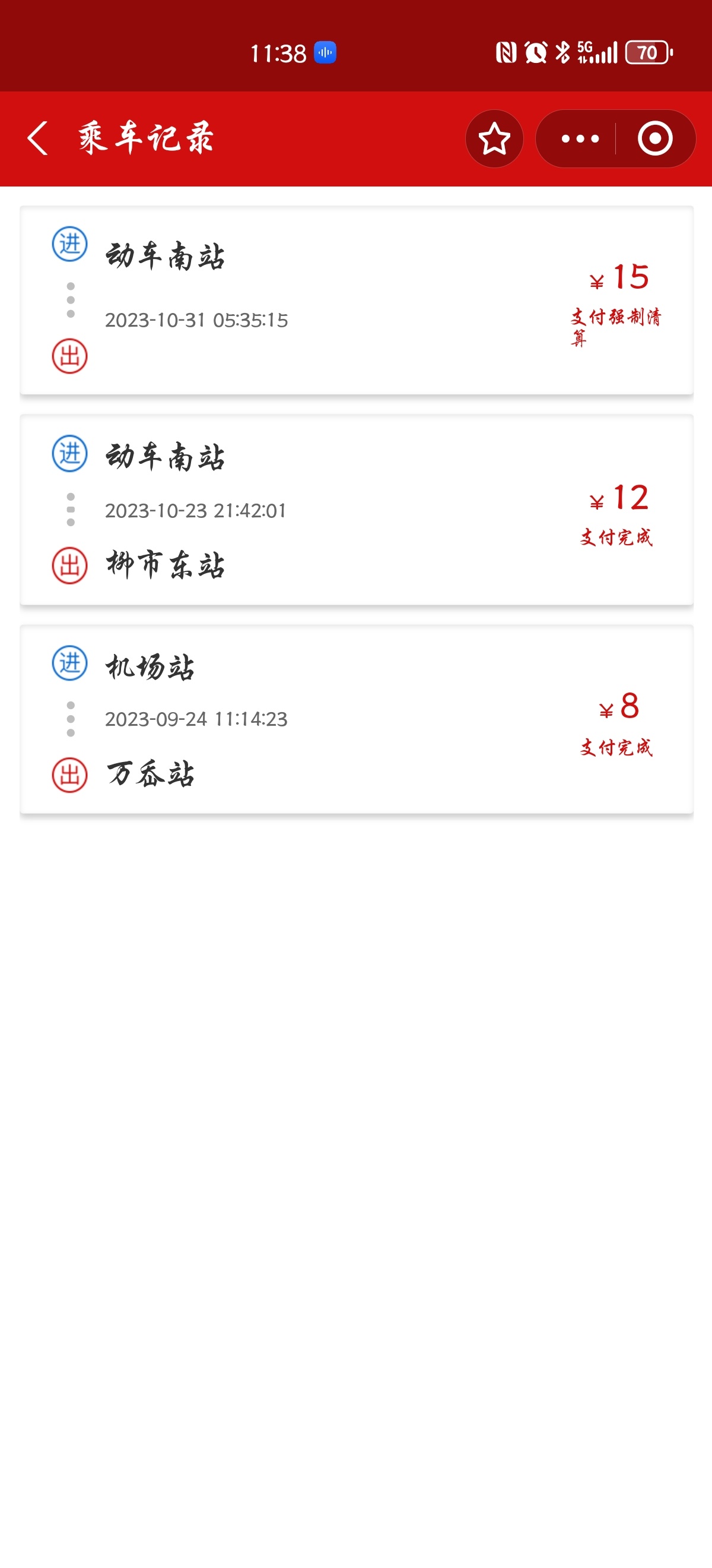 水天 发表于 2023-10-31 13:02 看详单吧,进站会预扣款15元的,你出站没刷上吧,过7天清算了
