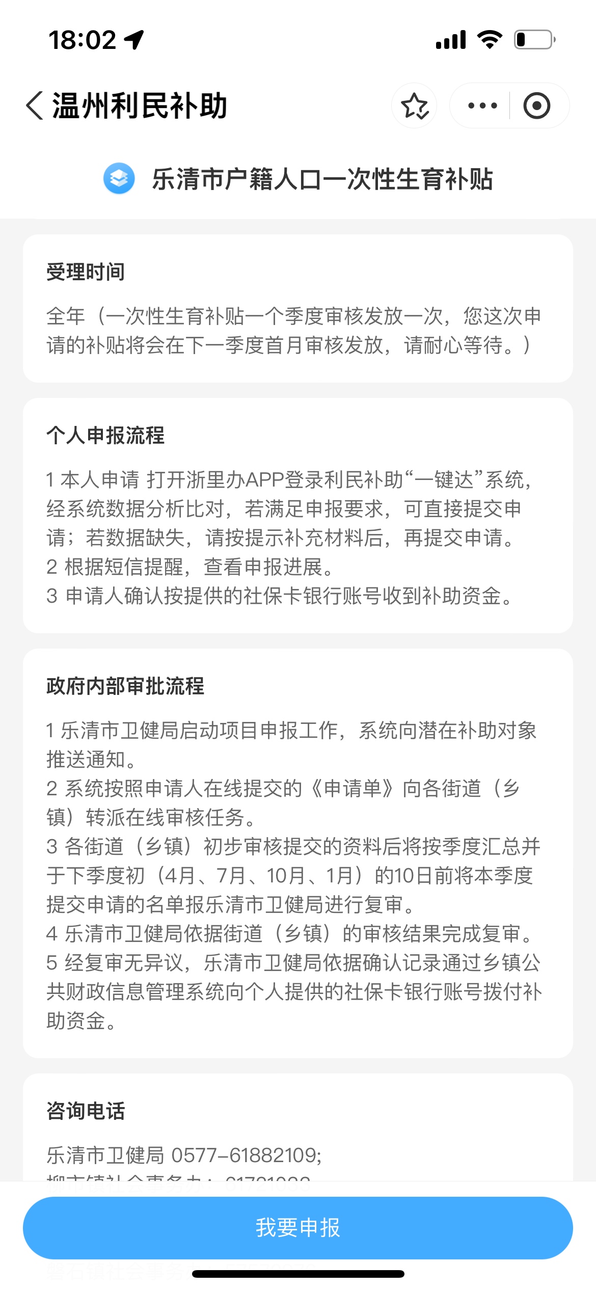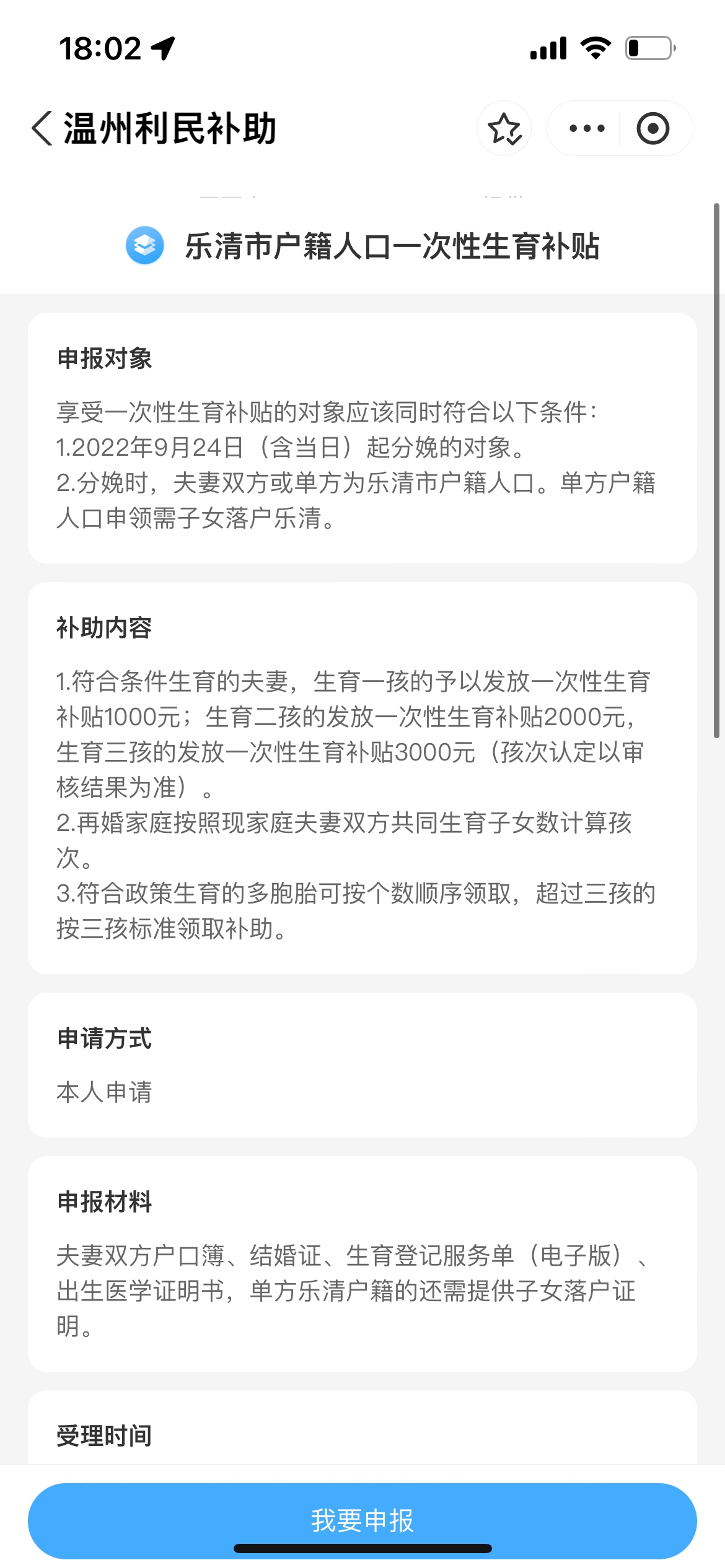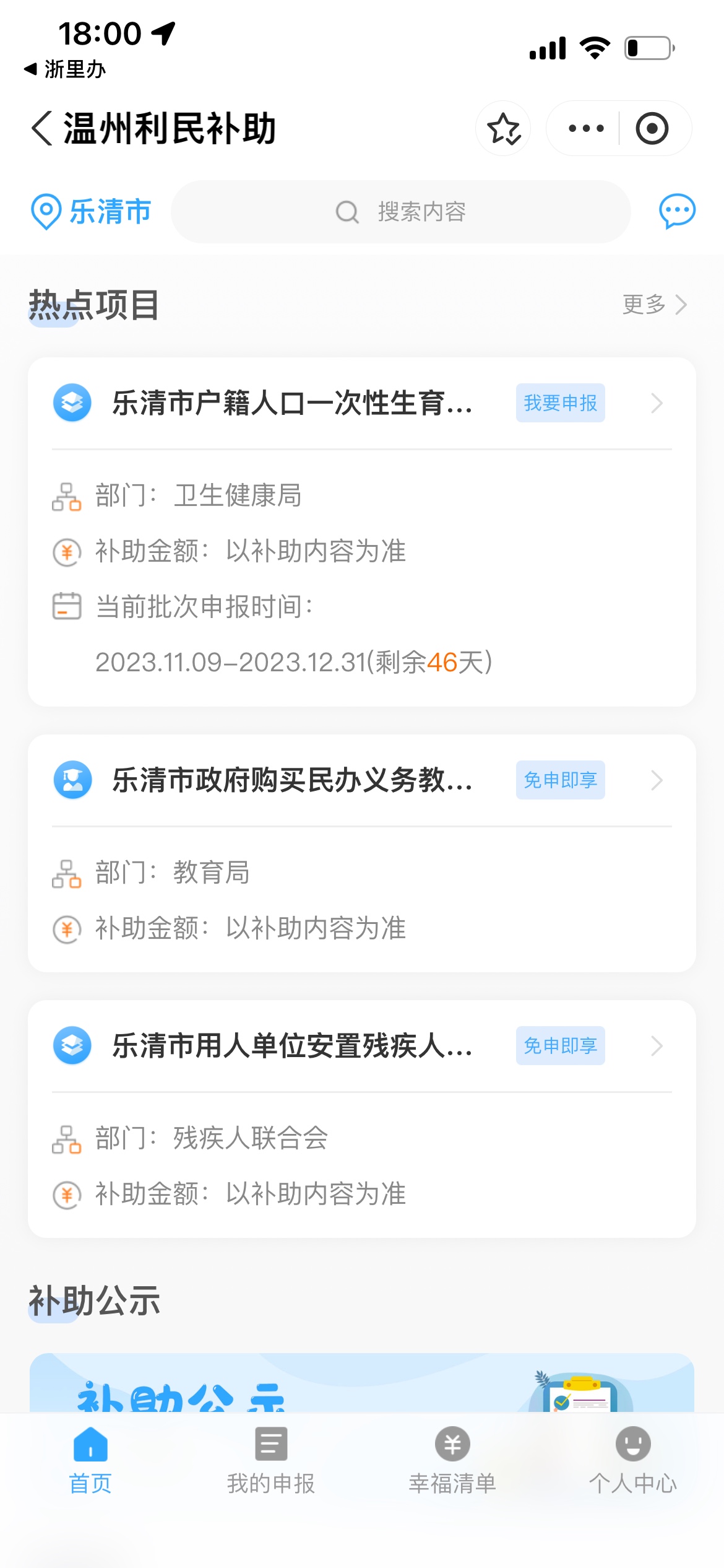 浙里办 乐清利民补助生育补贴