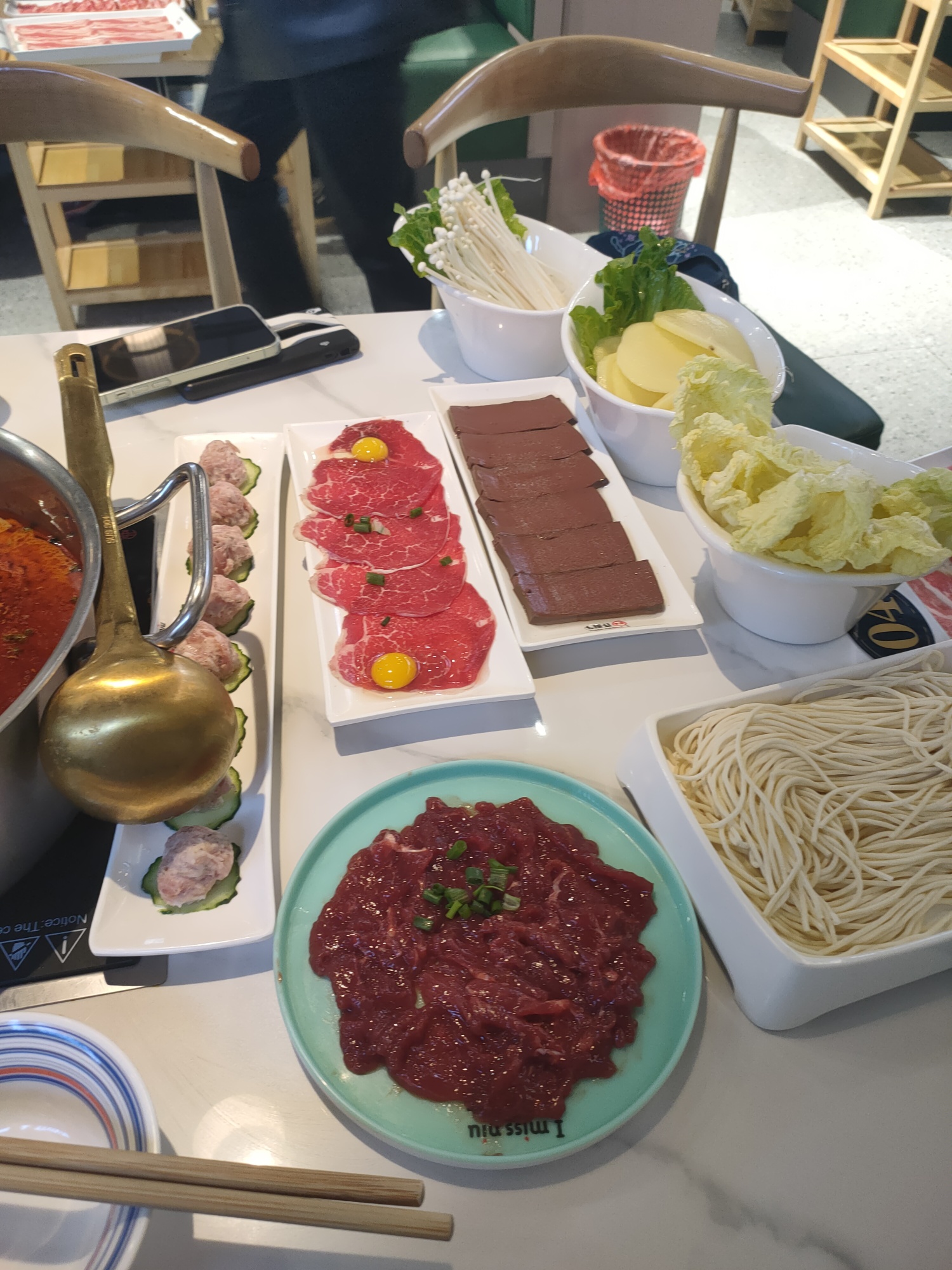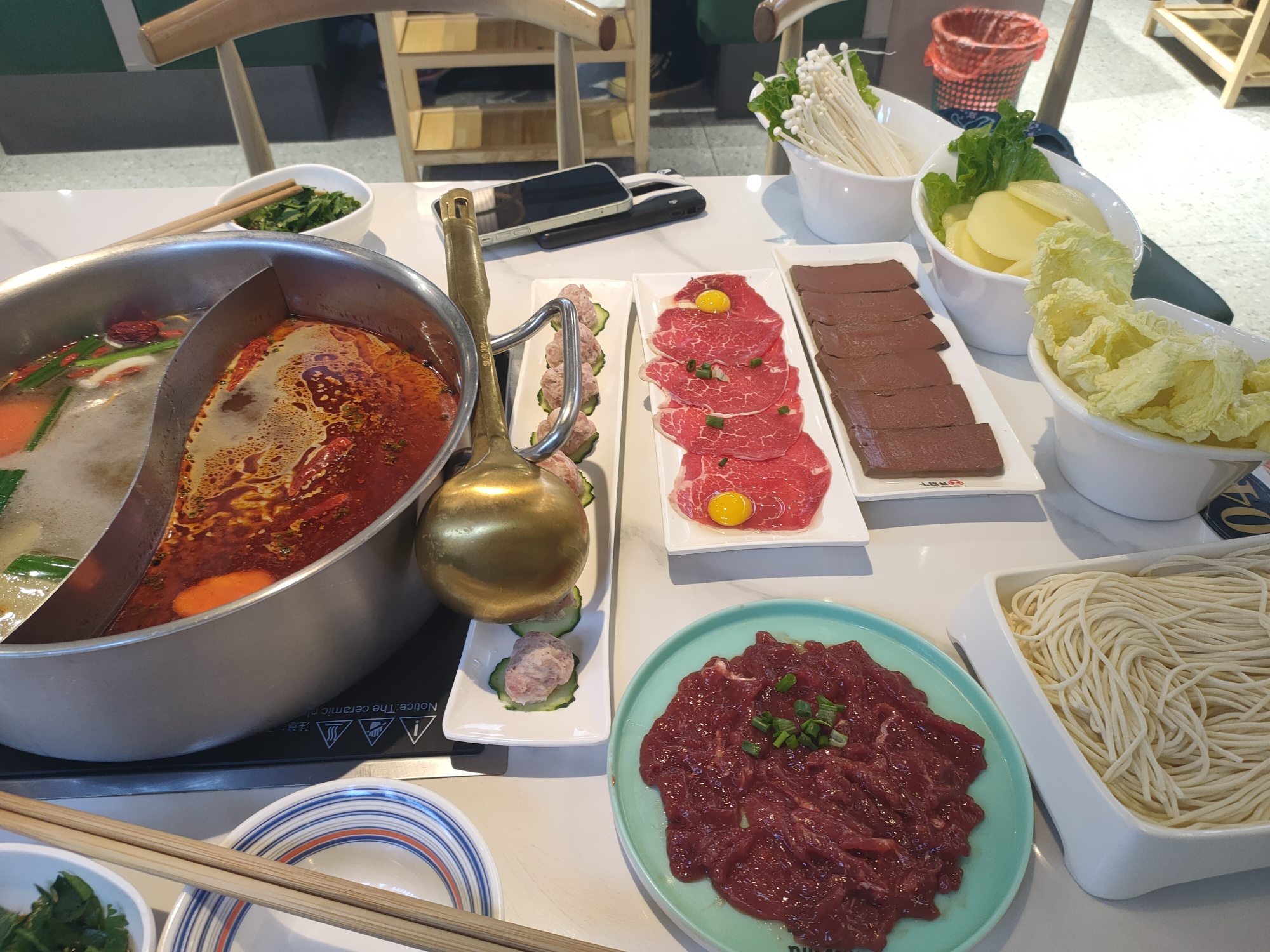 和朋友去吃了一家火锅,点了鸳鸯锅,没想到的是这个锅底居然一点也不辣,就微微辣,我感觉蛮适合我们这种不吃啦人士的,而且火锅店里的调料味道好独特,沾了吃进嘴里是酸口的,我真的好爱吃火锅,冬天不吃火锅真的会....哦 火锅是那个有好多猪猪侠的许府牛火锅