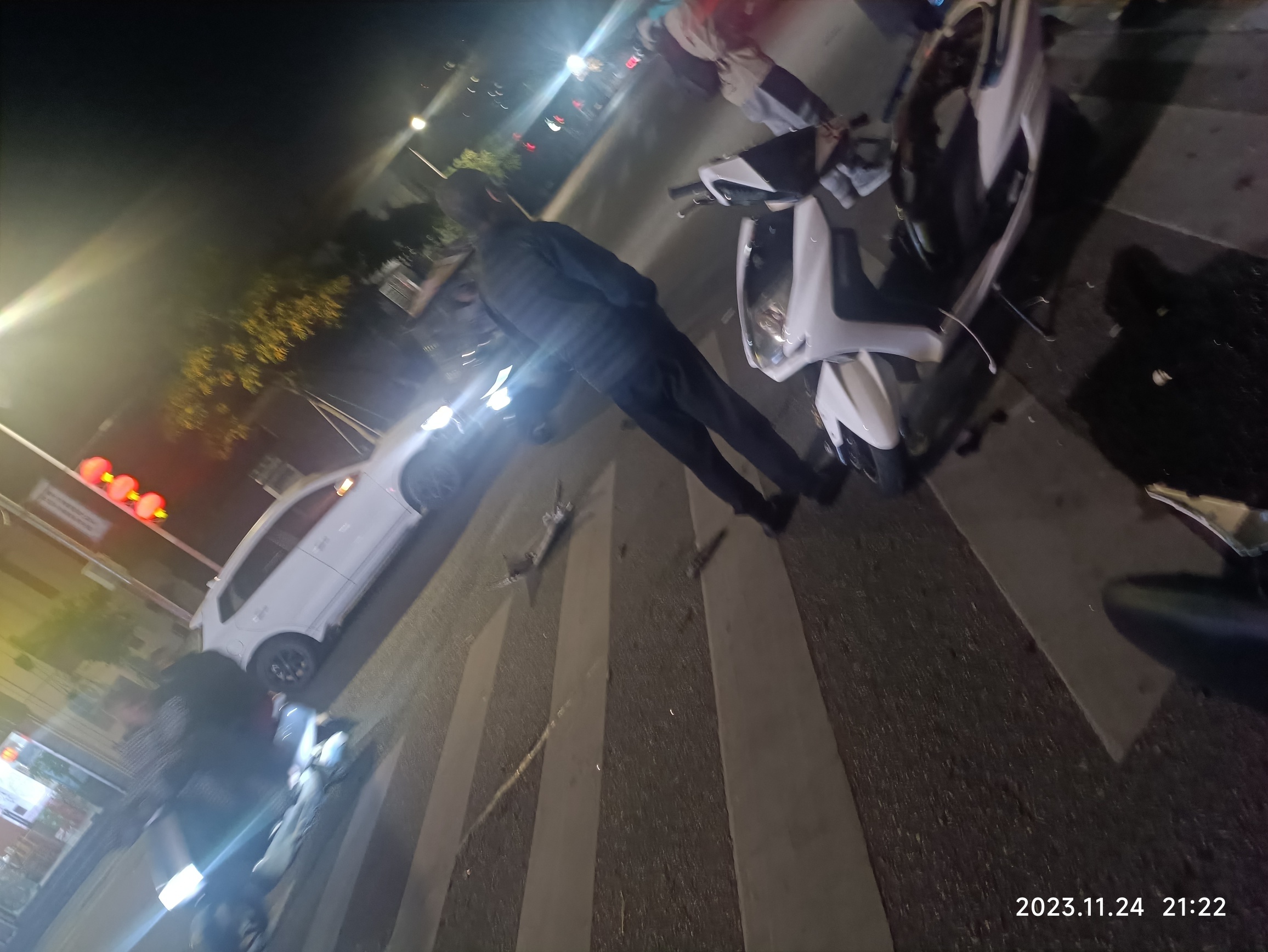 人民路,撞车,一股汽油味。汽车和摩托车相撞