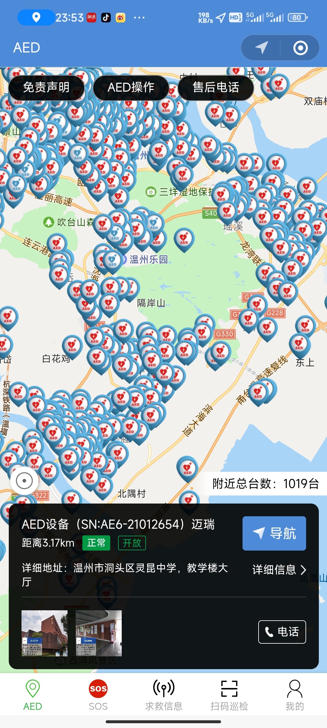 今天看一个永嘉学生心跳停止新闻,用AED救了。然后用小程序看了下,发现我弄乐清市的公共场合AED居然这么少,柳市更是只看到镇政府一个。看看温州市区跟瑞安,那是密密麻麻,到处都是啊!