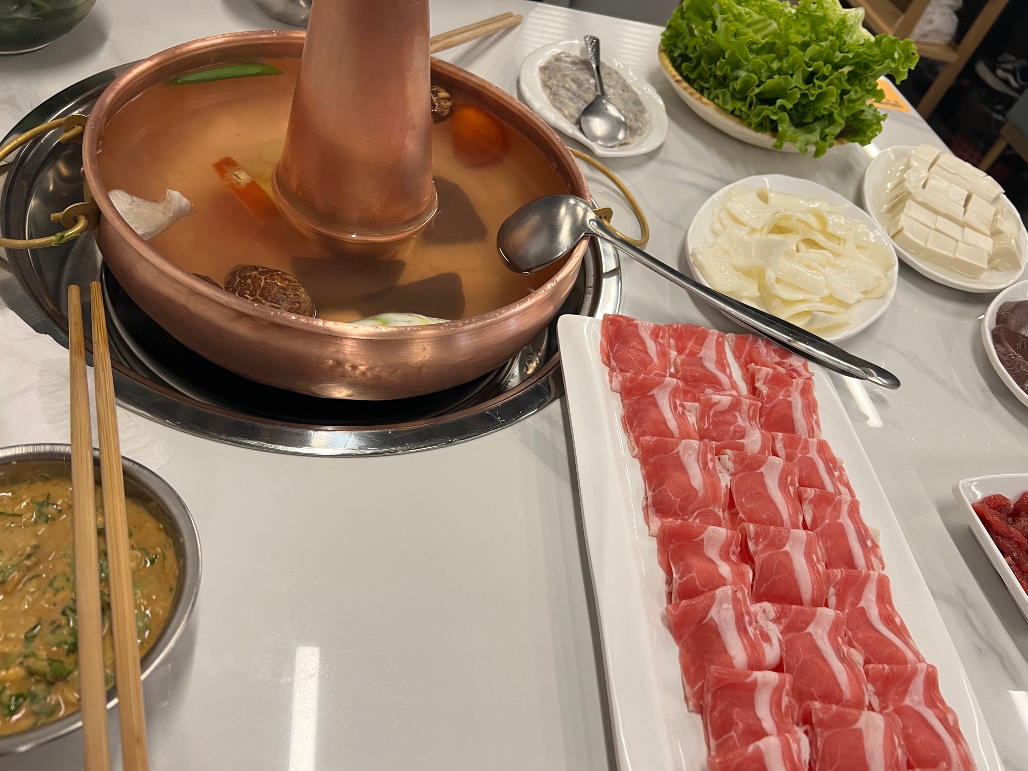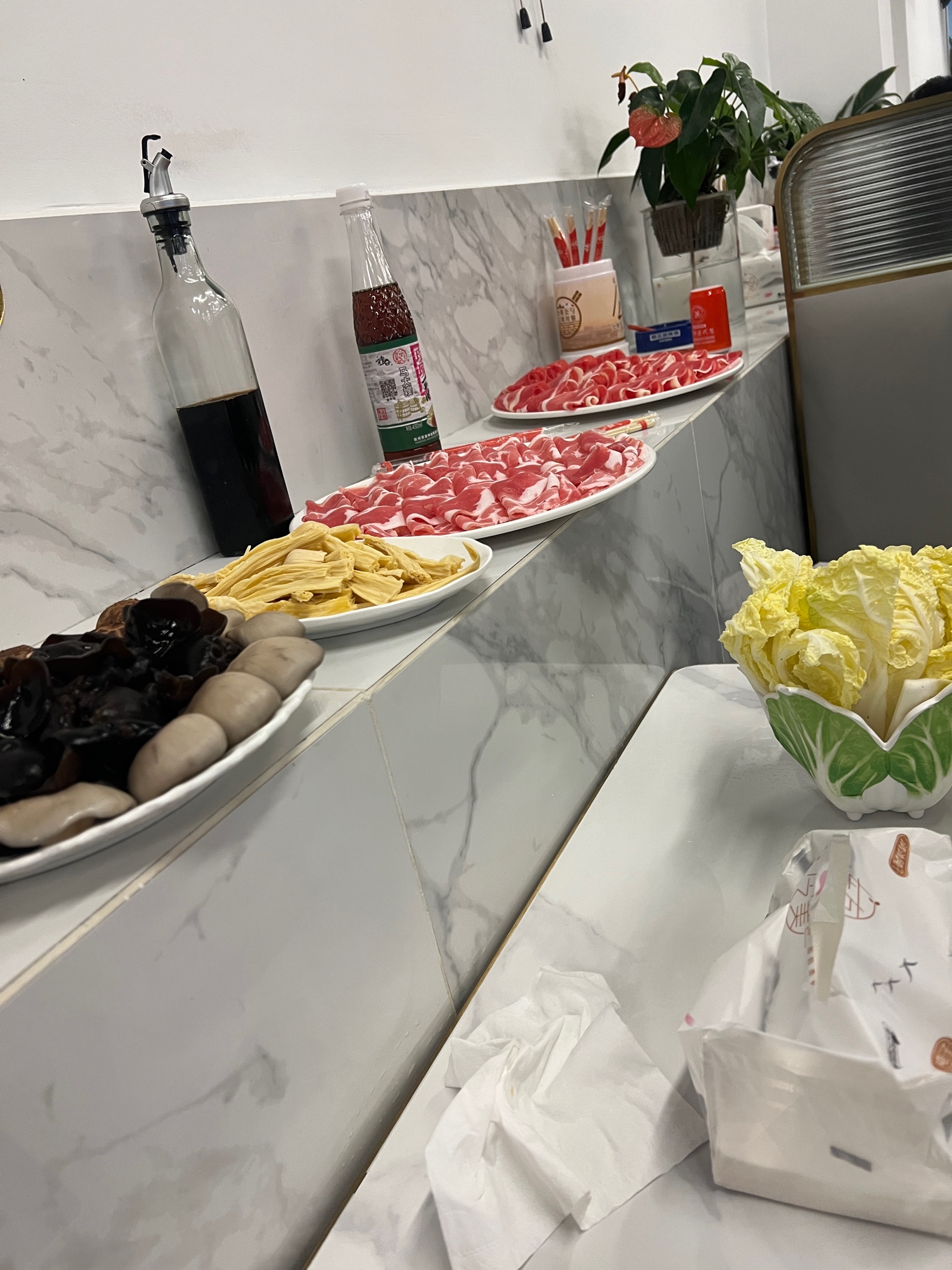 晚上家里吃火锅。除了不需要洗碗,没看出来外面火锅还有什么优势。