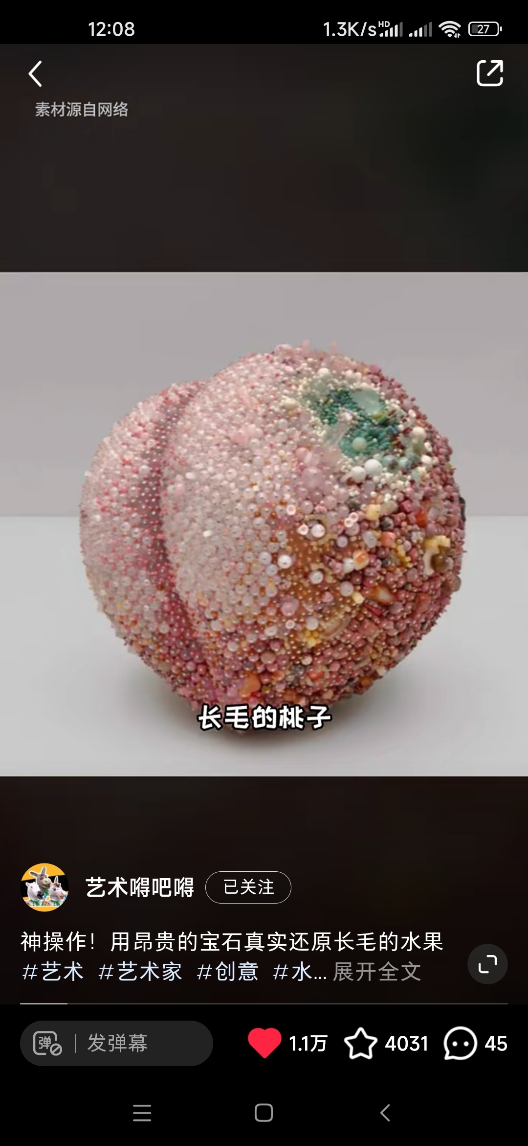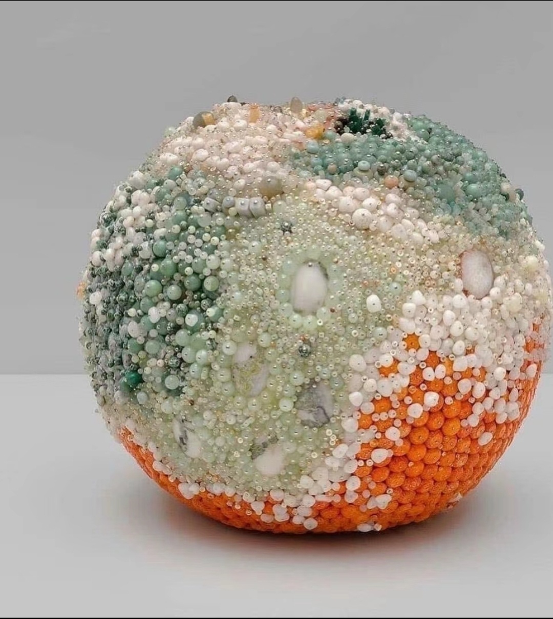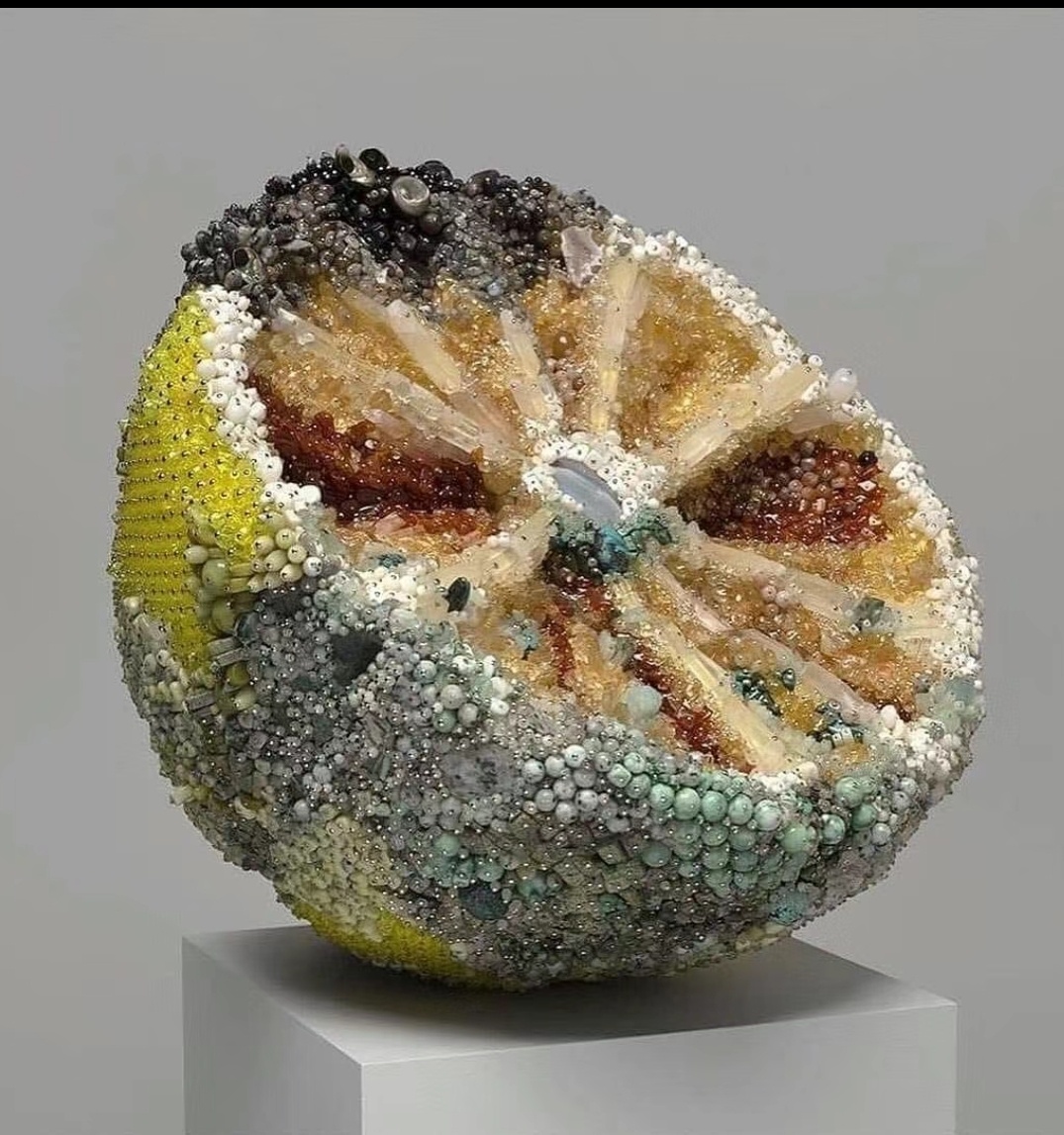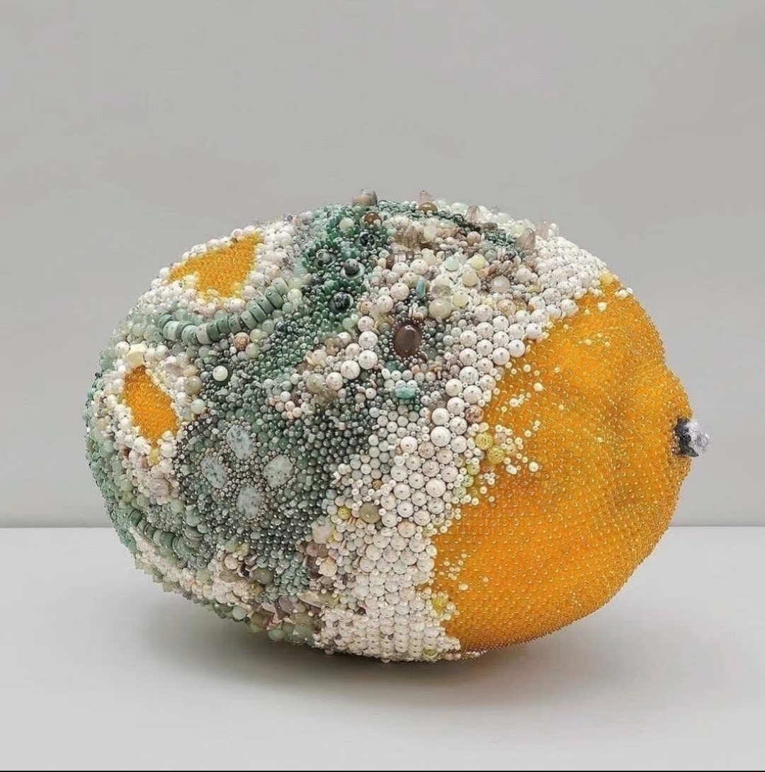 美国艺术家凯瑟琳·瑞安,她用各种宝石制作成一个个发霉的水果。谁也无法说清,这个作品究竟是美丽还是丑陋。凯瑟琳·瑞安的雕塑作品,使用的材料大多是珍贵宝石,她用这些珍贵的宝石,模仿发霉的水果,其中有芒果、梨、苹果等等。用不同颜色的宝石制作成一个个霉变的水果。