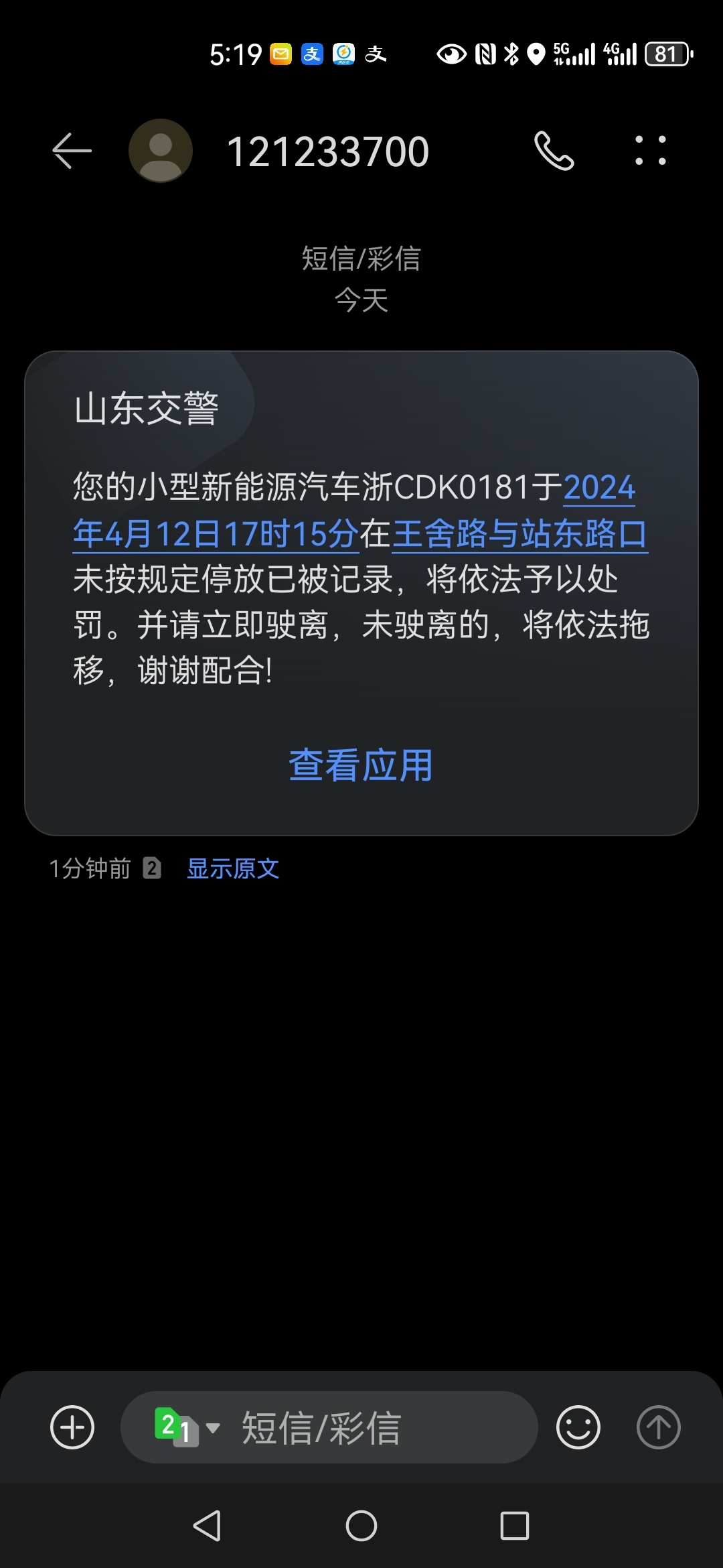 我收到云南交警的还以为被套牌了 打电话报警