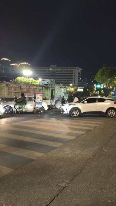 路口那么多车和人,前面很多电瓶车在等绿灯的时候工程车就在后面一直按喇叭,电瓶车绿灯直行工程车转弯出事故。,具体伤亡不详。