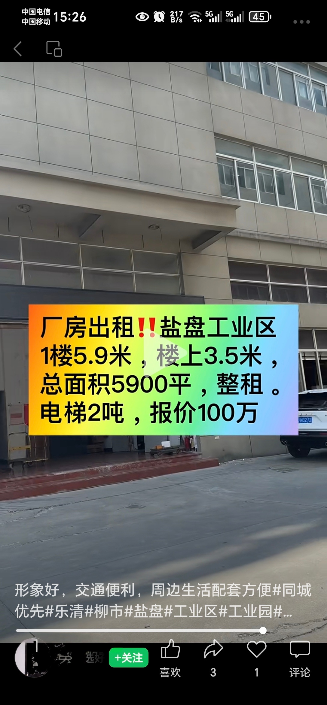 出租盐盘工业区厂房一楼700多平方,共4层, 面积合计2800多平方 (一楼高度