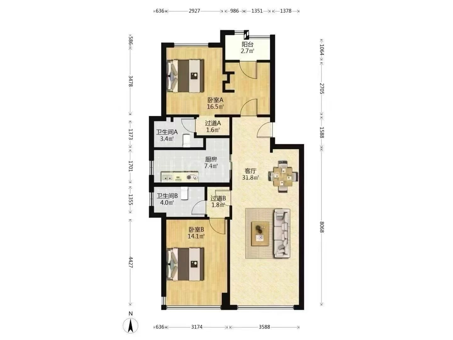 户型方正 视野开阔光线充足