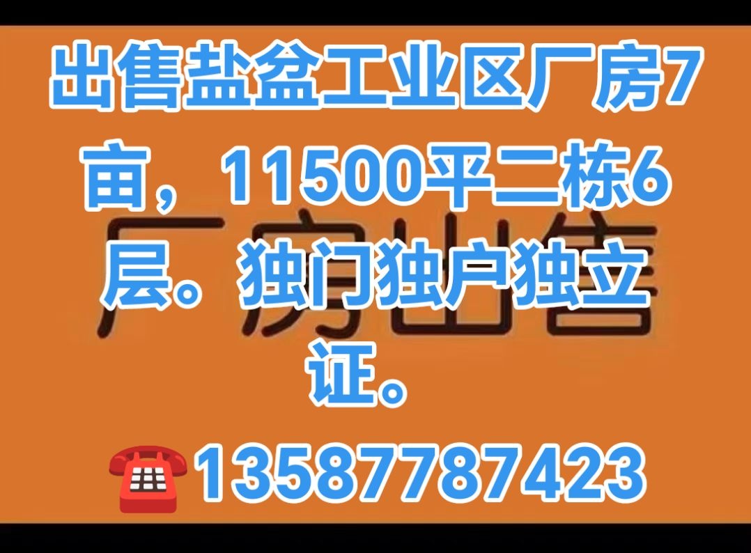 出售盐盆工业区厂房7亩,11500平二栋6层。独门独户独立证。13587787423
